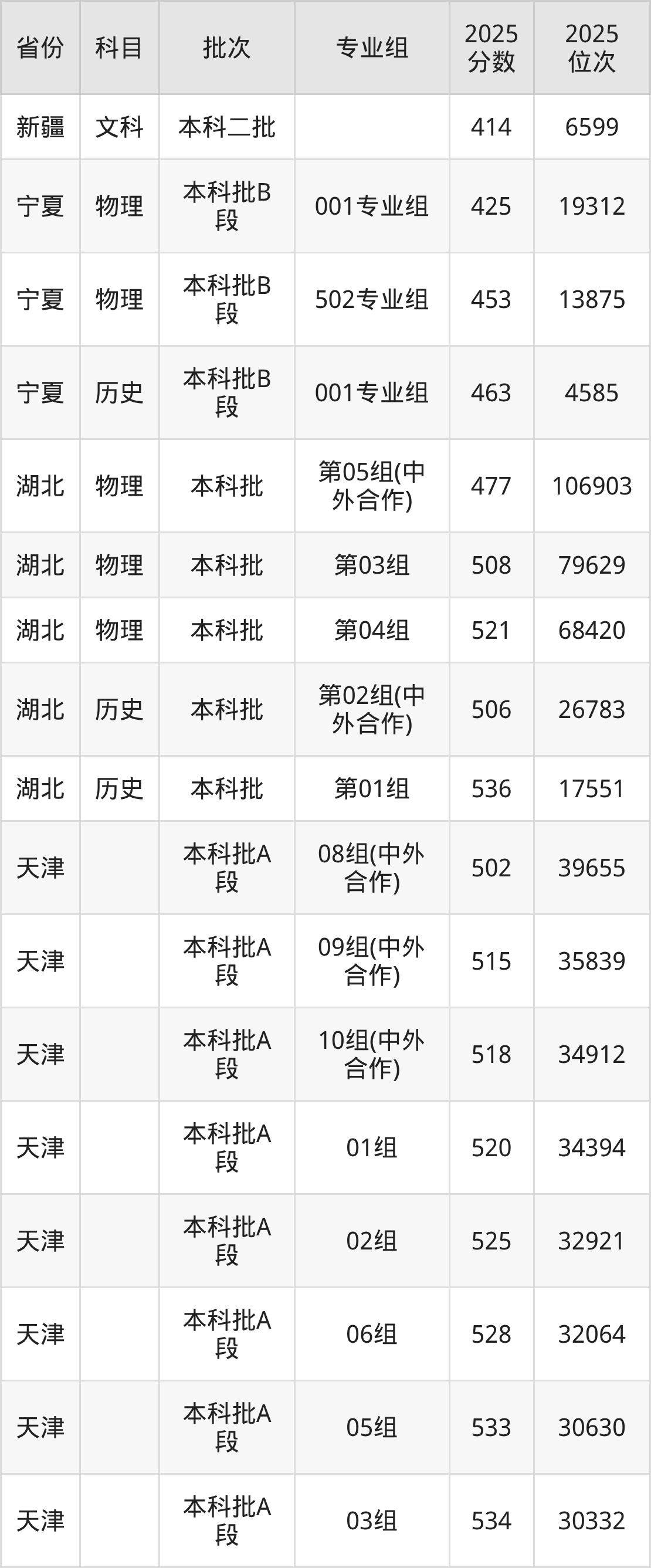 天津城建大学第005组(合作办学):2025年投档录取最低分为501分,录取最低位次为20000名。