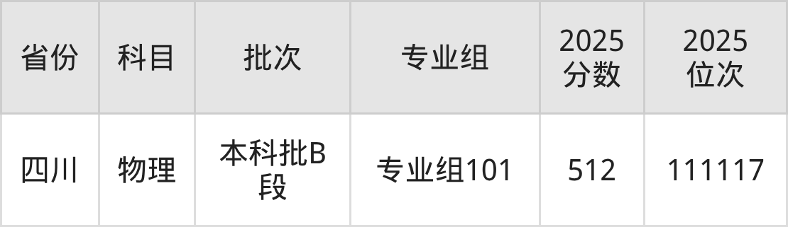 2025年在本科物理类进行招生,各专业组分数线详情如下: