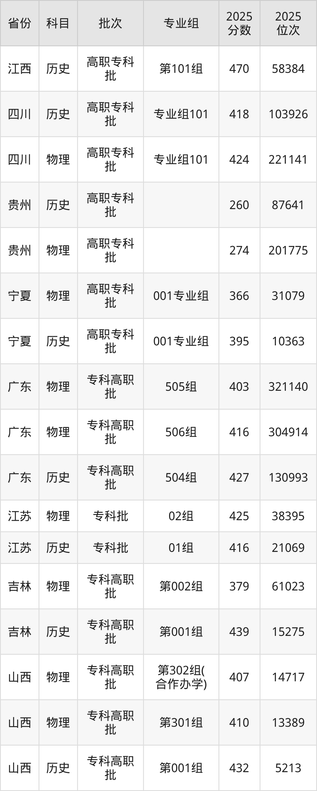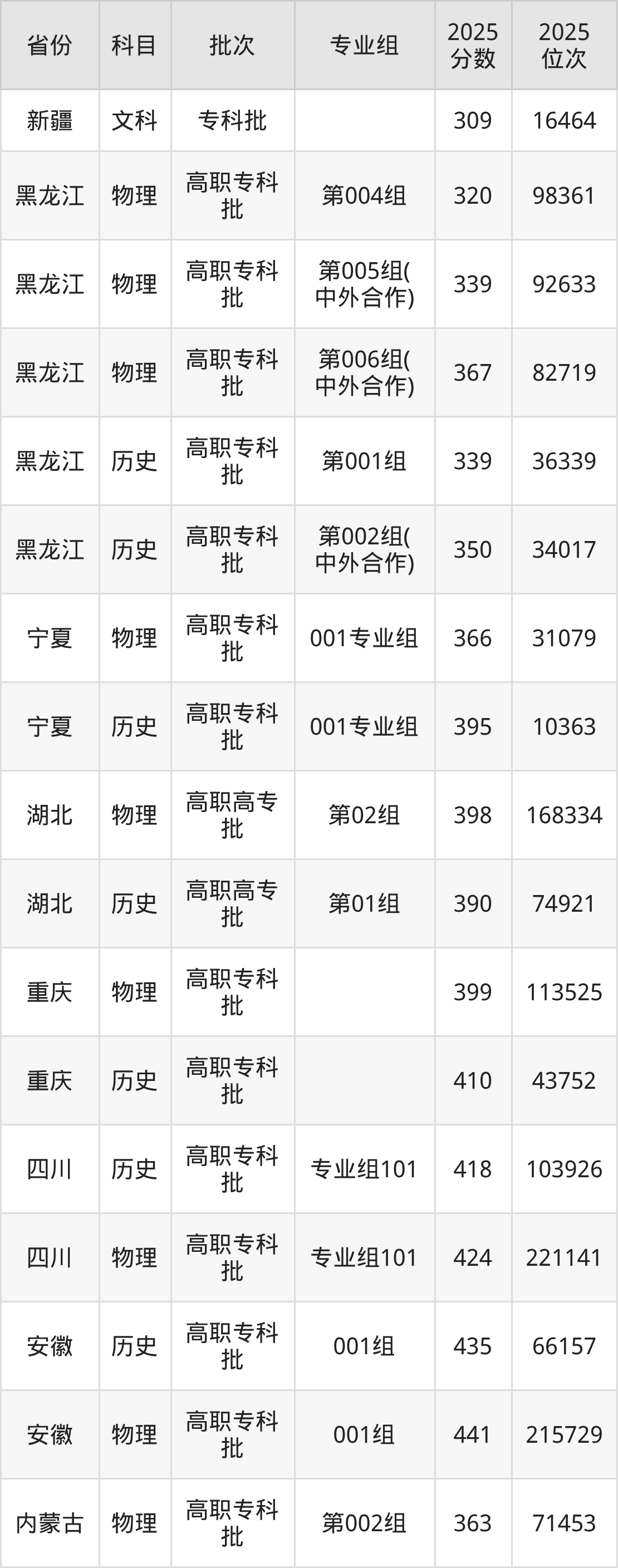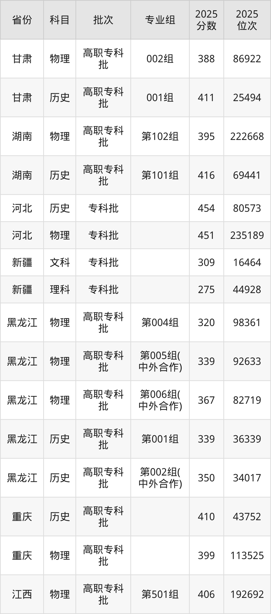 下面是2025年哈尔滨铁道职业技术学院全国录取分数线一览表,请查阅。
