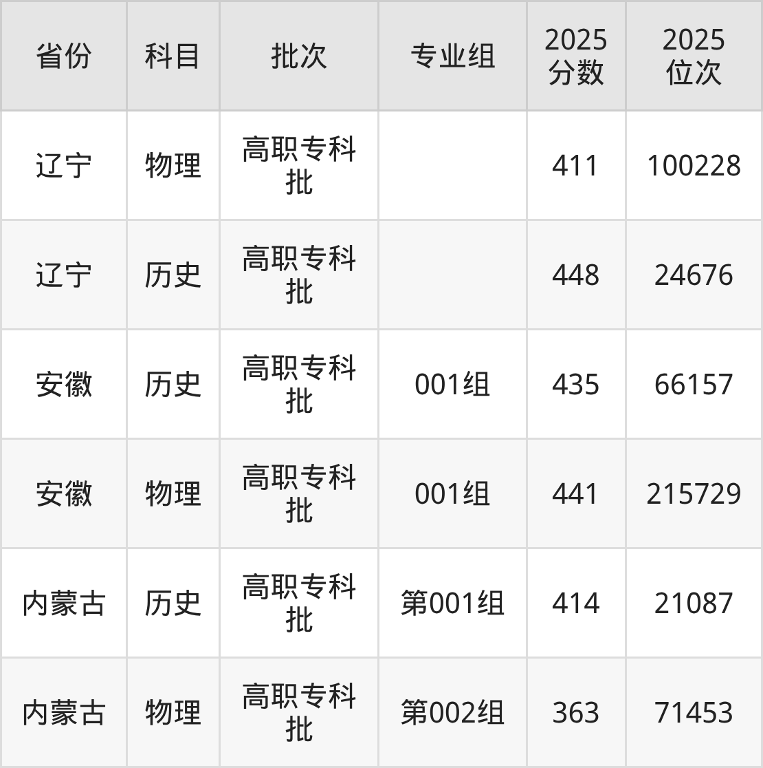 哈尔滨铁道职业技术学院001专业组:2025年投档录取最低分为411分,录取最低位次为25494名。