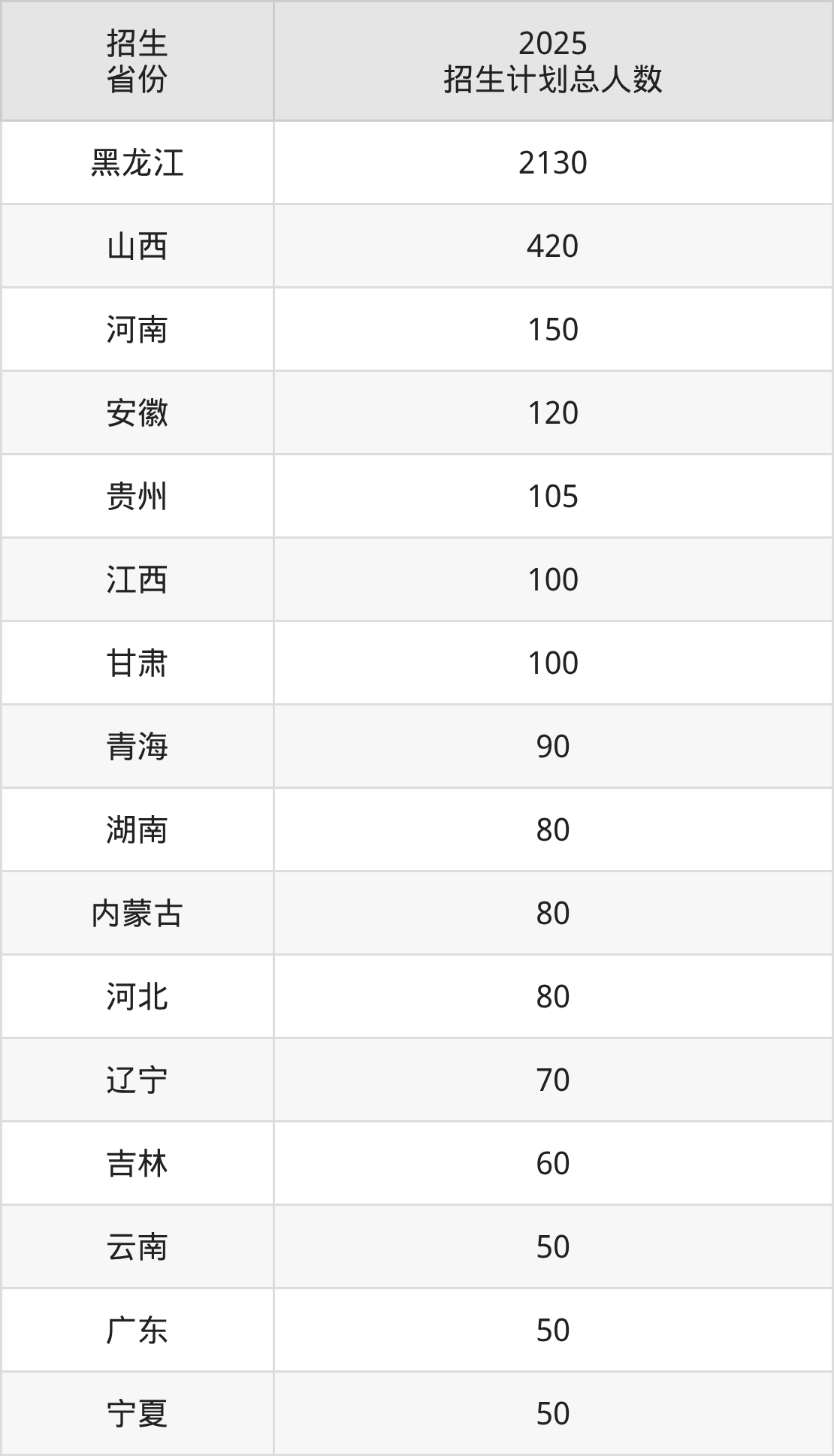 2025年哈尔滨铁道职业技术学院面向全国24个省市开展专科招生;招生专业共24个,招生人数共3924人。2025年在黑龙江省招生计划总人数是2130人,其中,哈尔滨铁道职业技术学院在黑龙江省招生人数最多的是城市轨道交通工程技术。哈尔滨铁道职业技术学院在各省具体招生人数情况如下表。