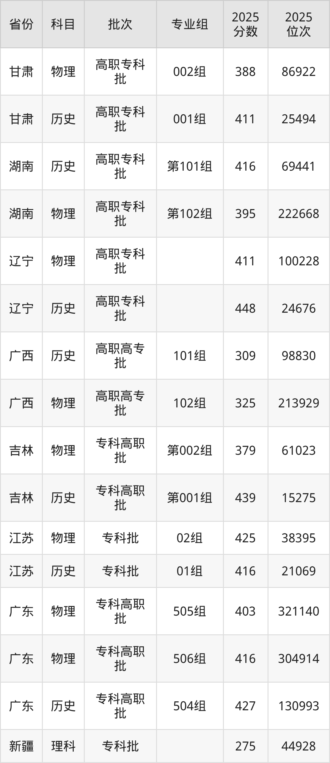 高速铁路综合维修技术:2025年投档录取最低分为468分。