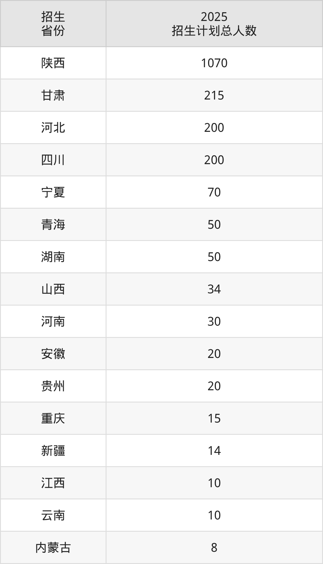 2025年汉中职业技术学院面向全国16个省市开展专科招生;招生专业共39个,招生人数共2016人。2025年在陕西省招生计划总人数是1070人,其中,汉中职业技术学院在陕西省招生人数最多的是口腔医学。汉中职业技术学院在各省具体招生人数情况如下表。