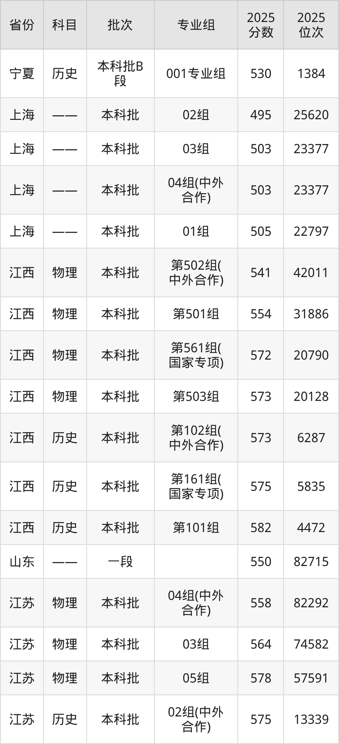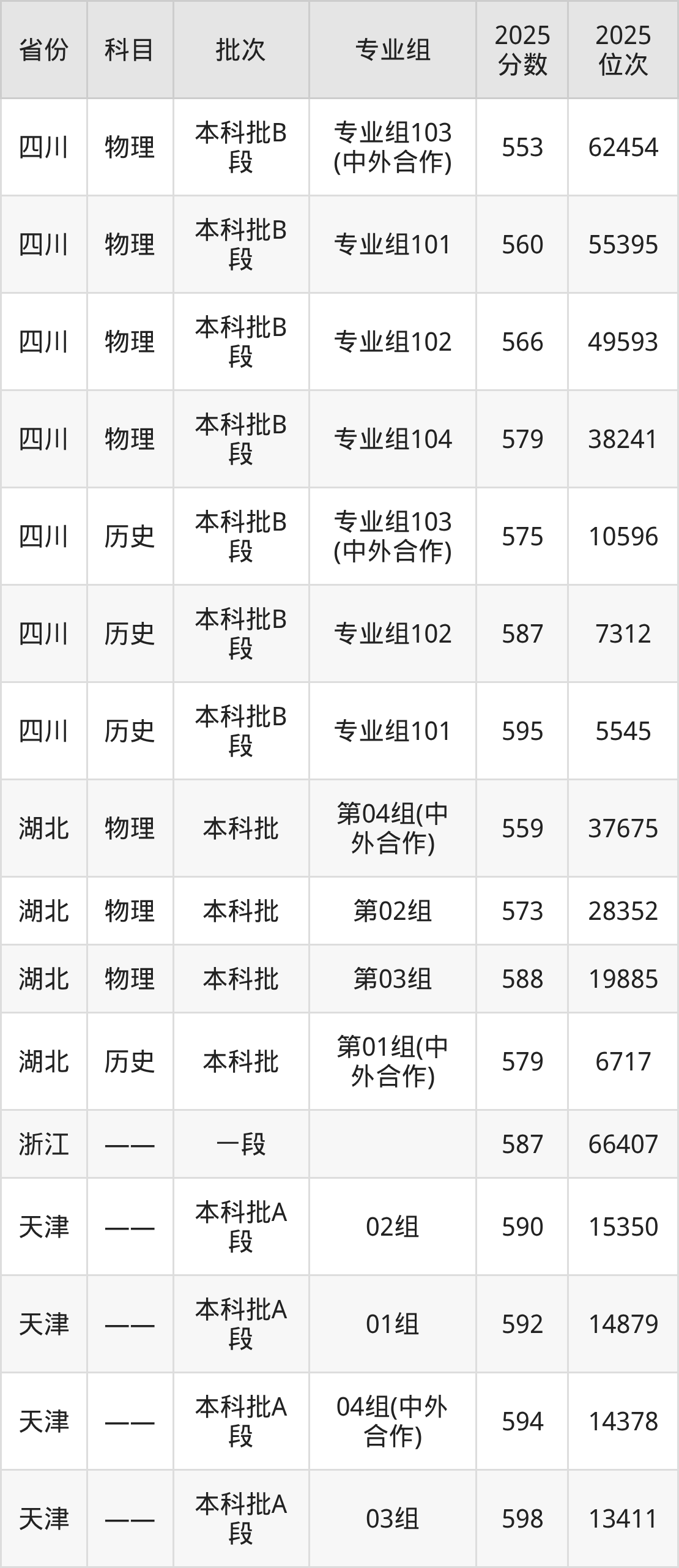 浙江财经大学002组(中外合作办学):2025年投档录取最低分为561分,录取最低位次为58775名。