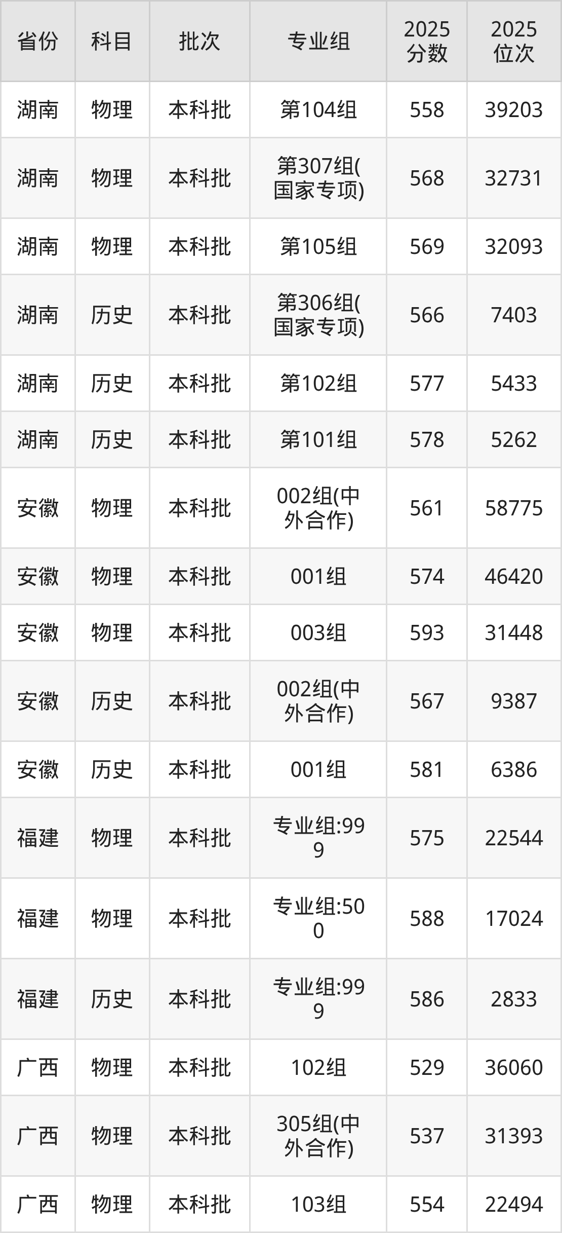 2025年投档录取最低分为579分,录取最低位次为11592名。