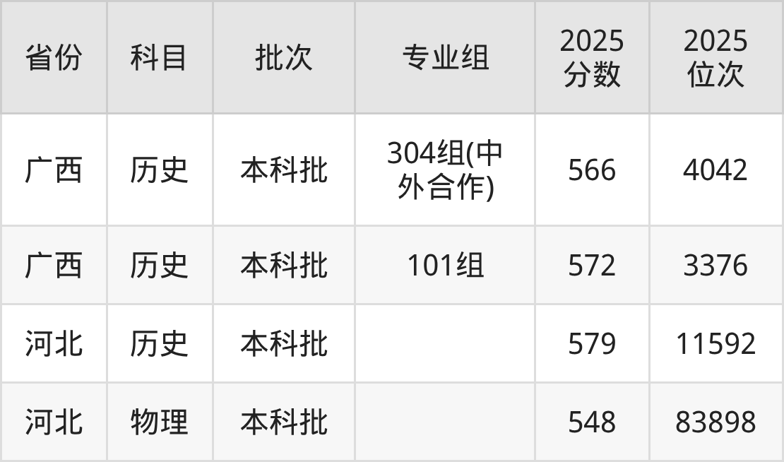 2025年投档录取最低分为548分,录取最低位次为83898名。