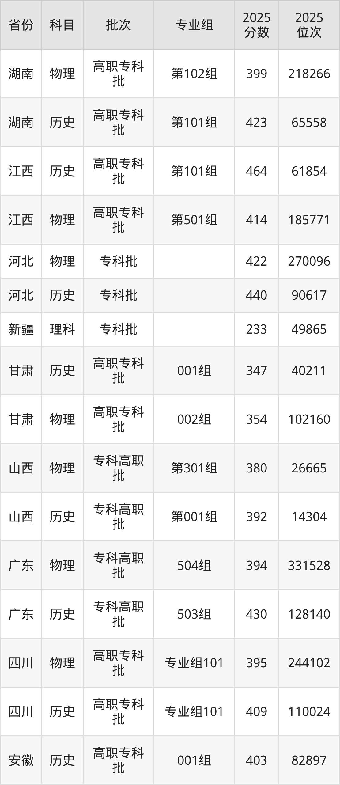武汉工程职业技术学院001组:2025年投档录取最低分为403分,录取最低位次为82897名。