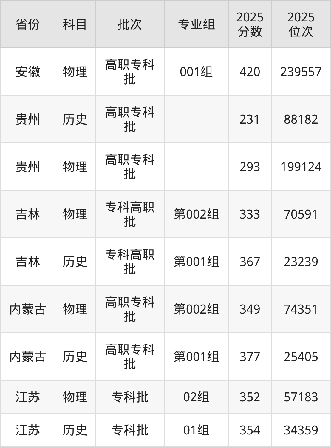 武汉工程职业技术学院001组:2025年投档录取最低分为420分,录取最低位次为239557名。