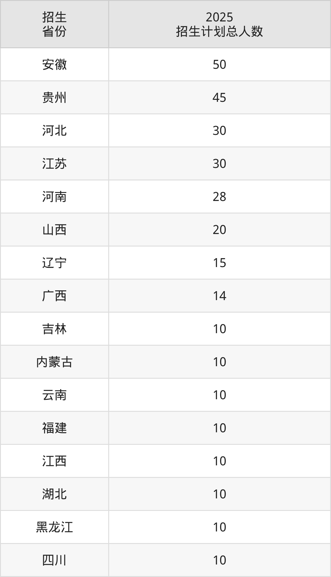2025年枣庄学院面向全国21个省市开展本科招生;招生专业共31个,招生人数共342人。枣庄学院在各省具体招生人数情况如下表。