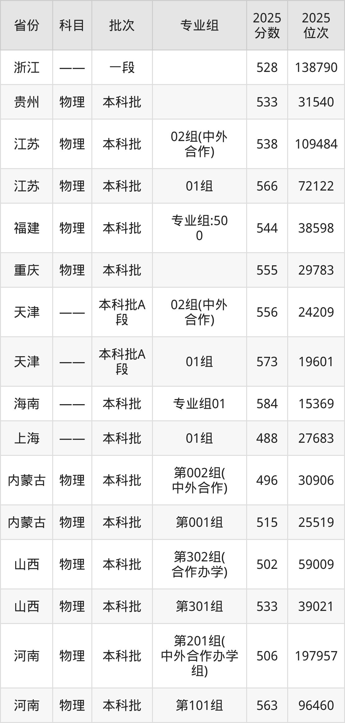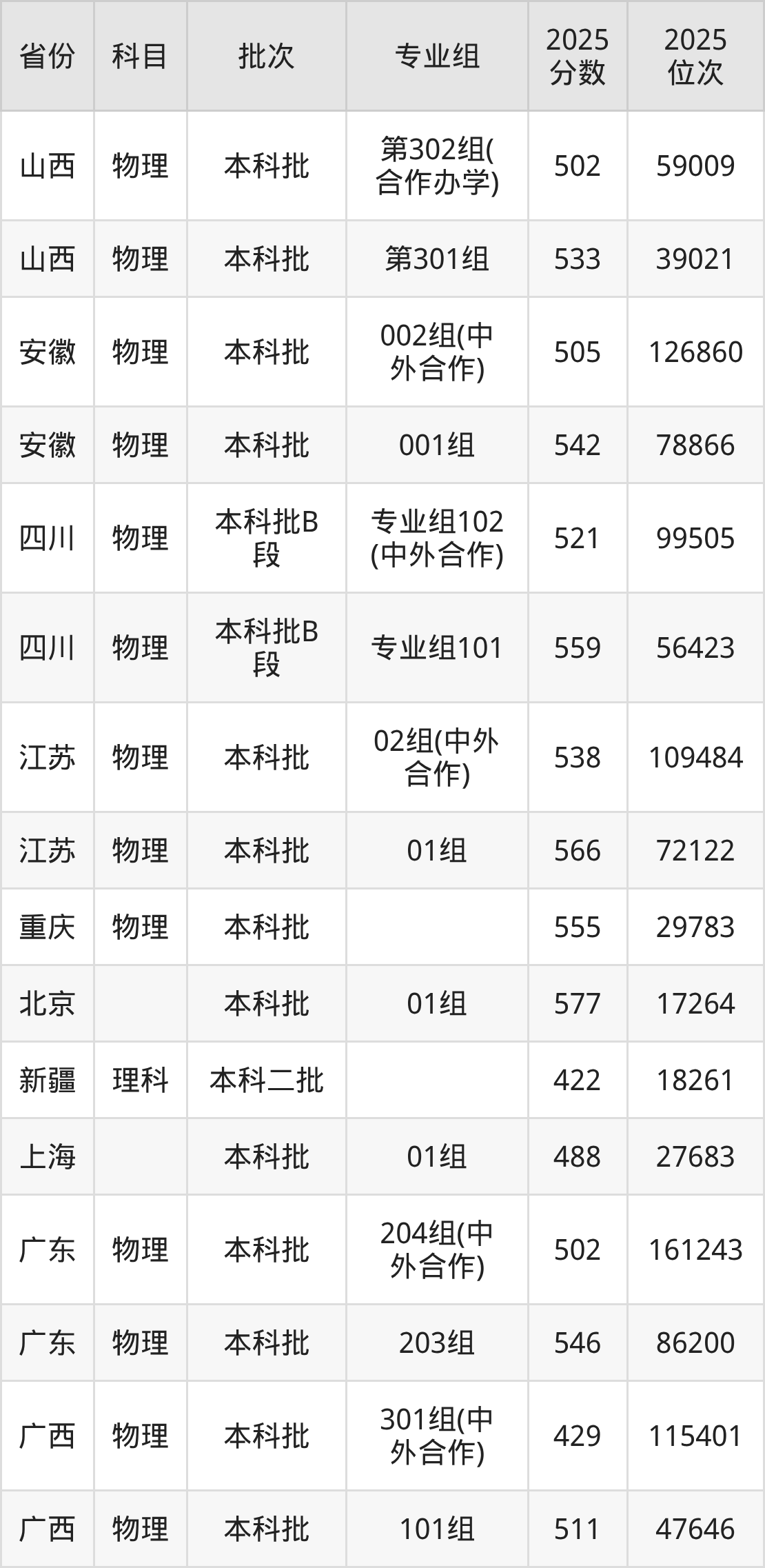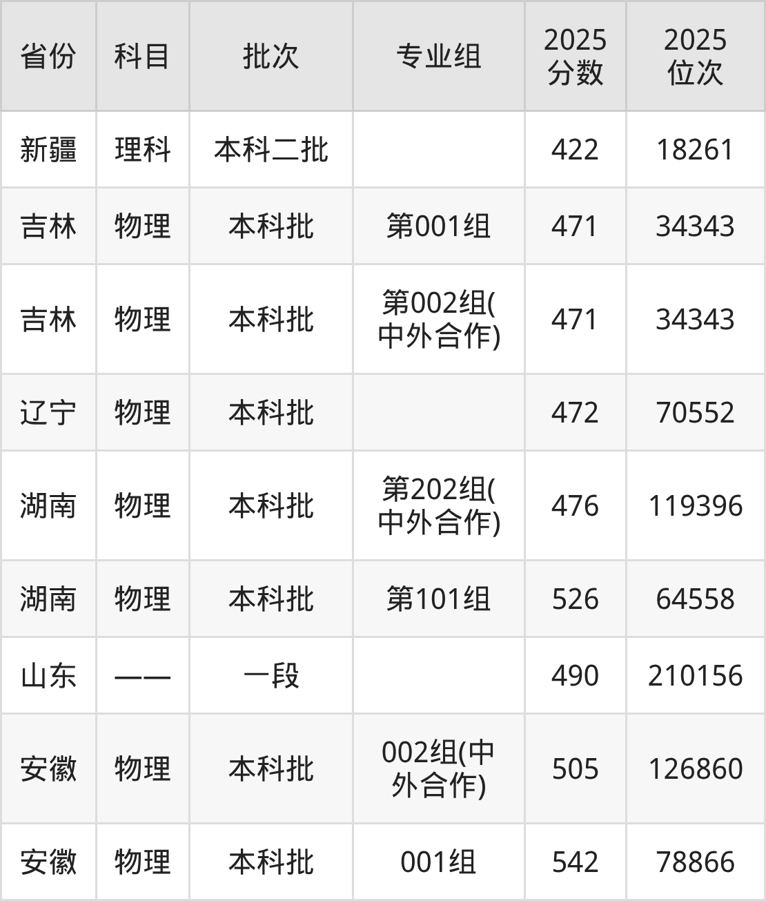 2025年在本科物理类进行招生,各专业组分数线详情如下: