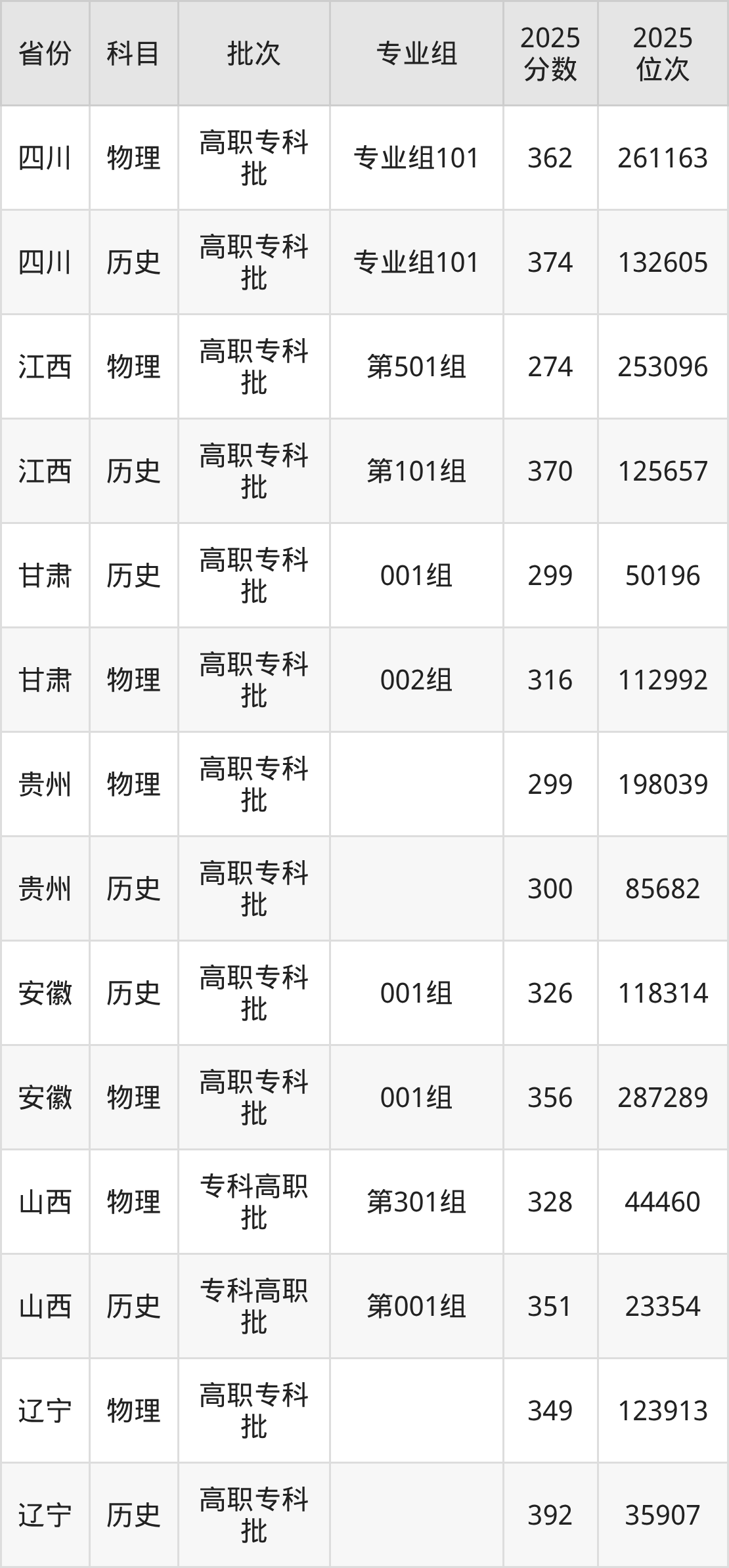 江西传媒职业学院专业组101:2025年投档录取最低分为362分,录取最低位次为261163名。