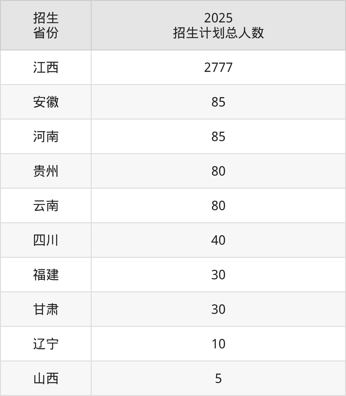 2025年江西传媒职业学院面向全国10个省市开展专科招生;招生专业共21个,招生人数共3222人。2025年在江西省招生计划总人数是2777人,其中,江西传媒职业学院在江西省招生人数最多的是数字媒体技术。江西传媒职业学院在各省具体招生人数情况如下表。