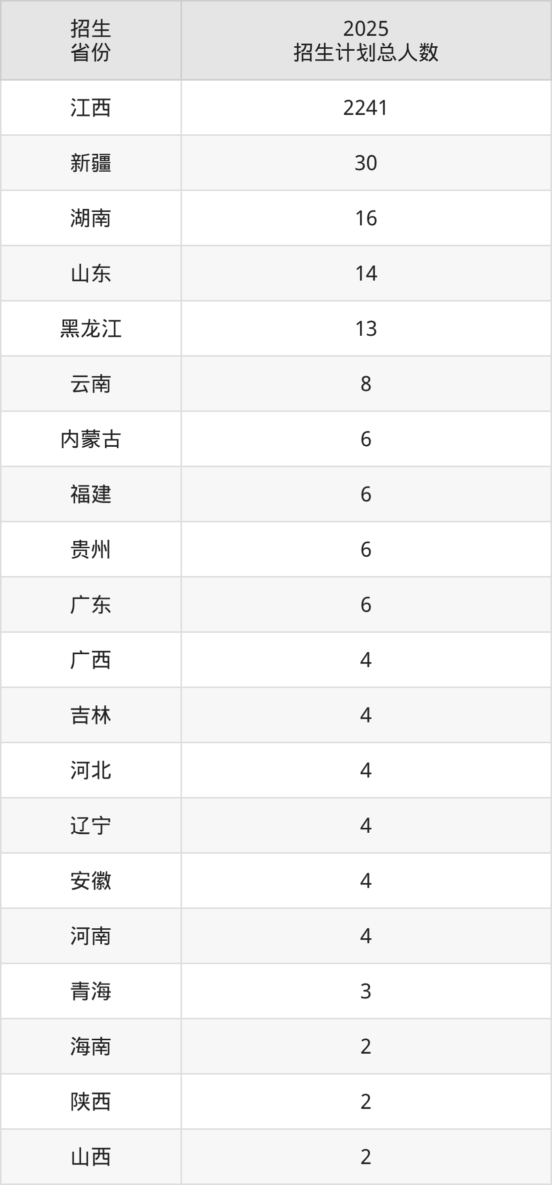 2025年江西信息应用职业技术学院面向全国25个省市开展专科招生;招生专业共30个,招生人数共2389人。2025年在江西省招生计划总人数是2241人,其中,江西信息应用职业技术学院在江西省招生人数最多的是数字媒体技术。江西信息应用职业技术学院在各省具体招生人数情况如下表。