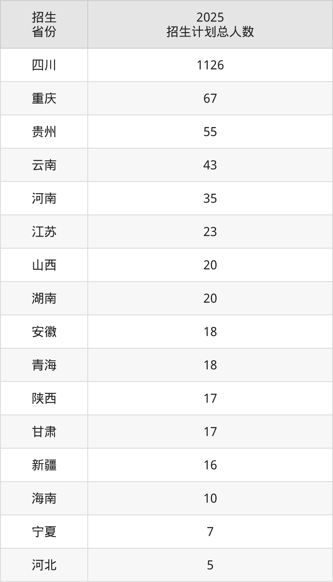 2025年泸州职业技术学院面向全国21个省市开展专科招生;招生专业共35个,招生人数共1507人。2025年在四川省招生计划总人数是1126人,其中,泸州职业技术学院在四川省招生人数最多的是酿酒技术。泸州职业技术学院在各省具体招生人数情况如下表。