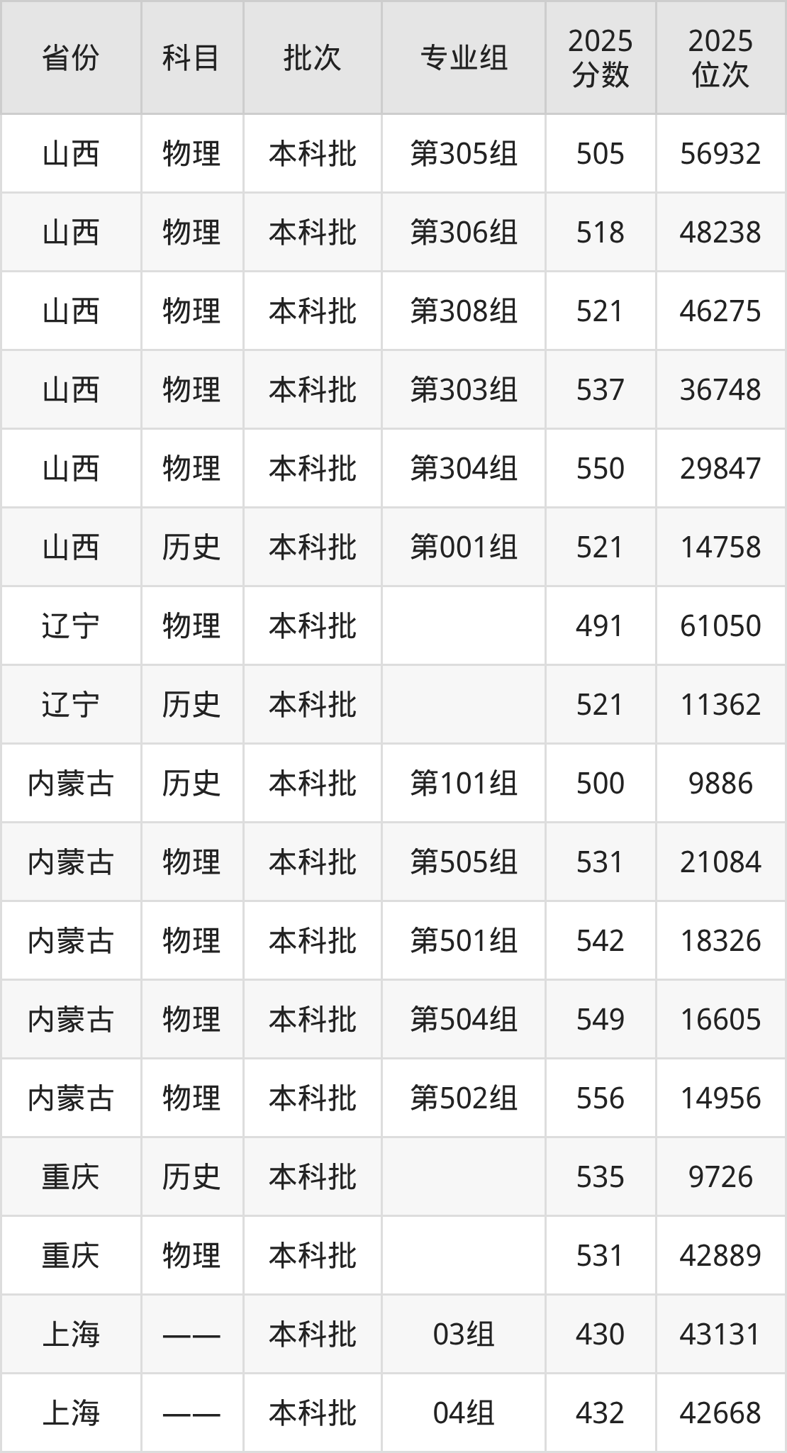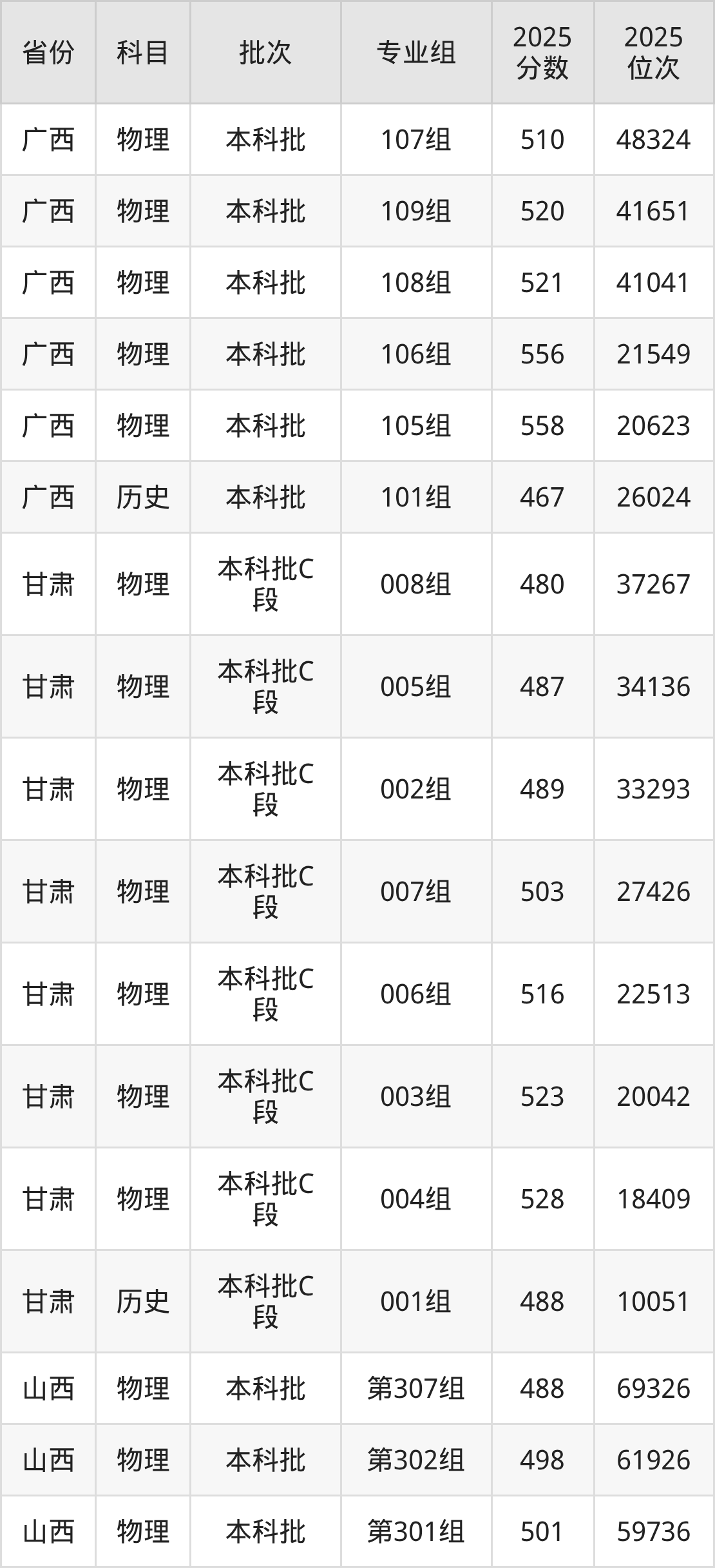 南昌医学院第06组:2025年投档录取最低分为521分,录取最低位次为68420名。