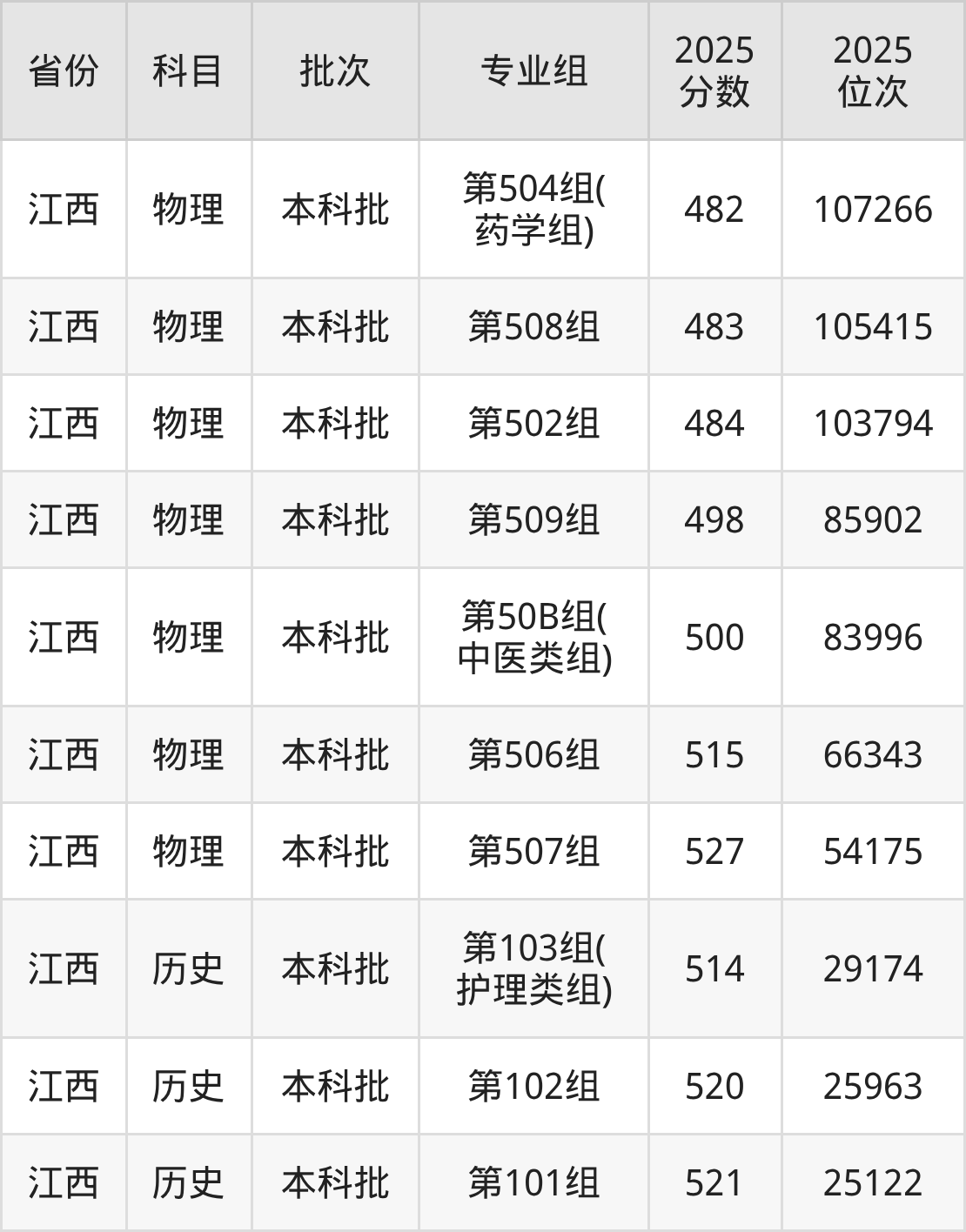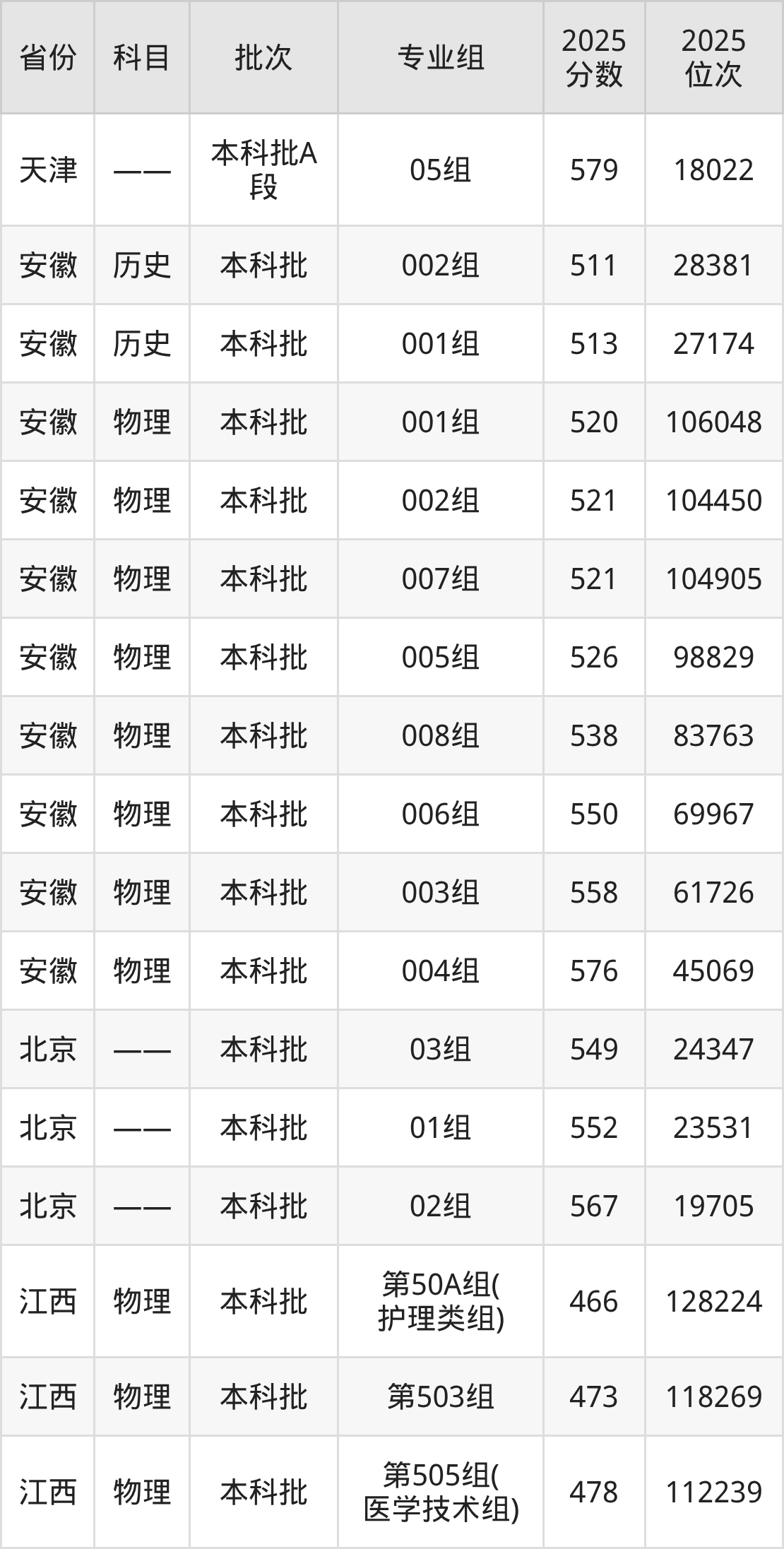 下面是2025年南昌医学院全国录取分数线一览表,请查阅。