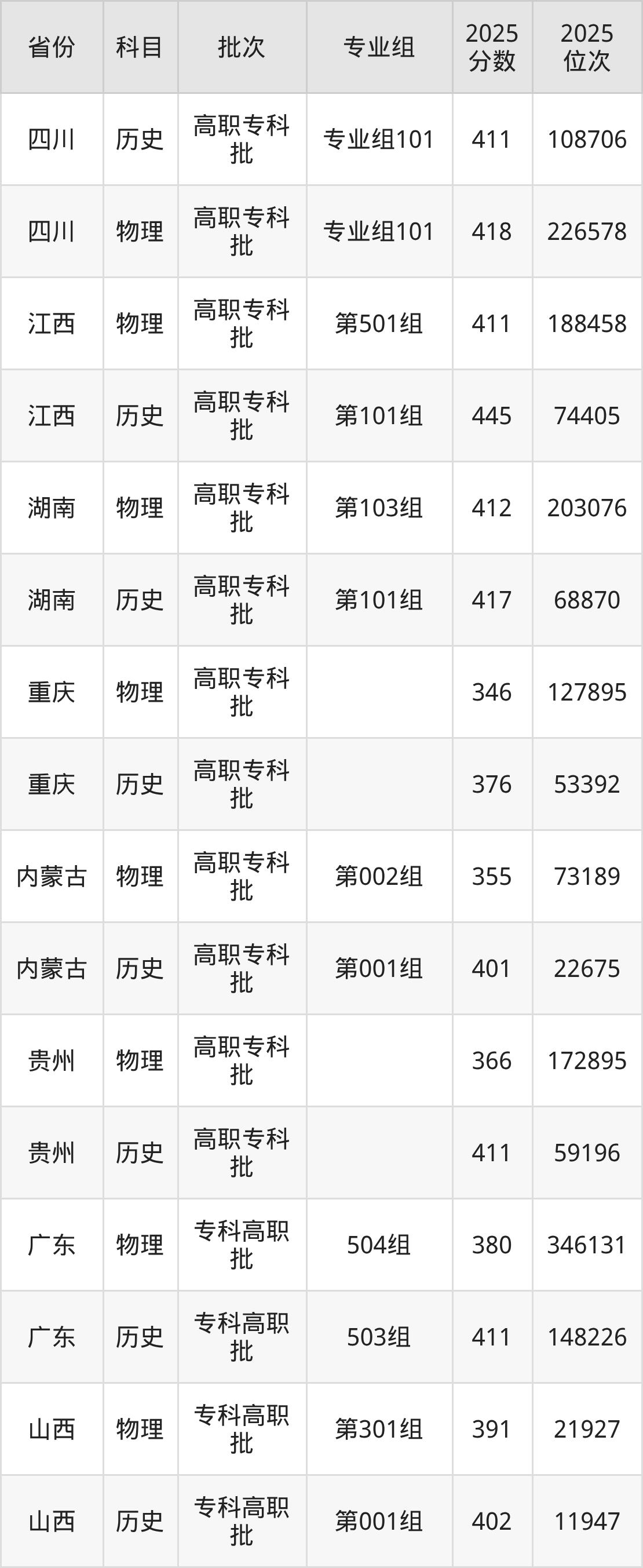 湖南机电职业技术学院专业组101:2025年投档录取最低分为411分,录取最低位次为108706名。