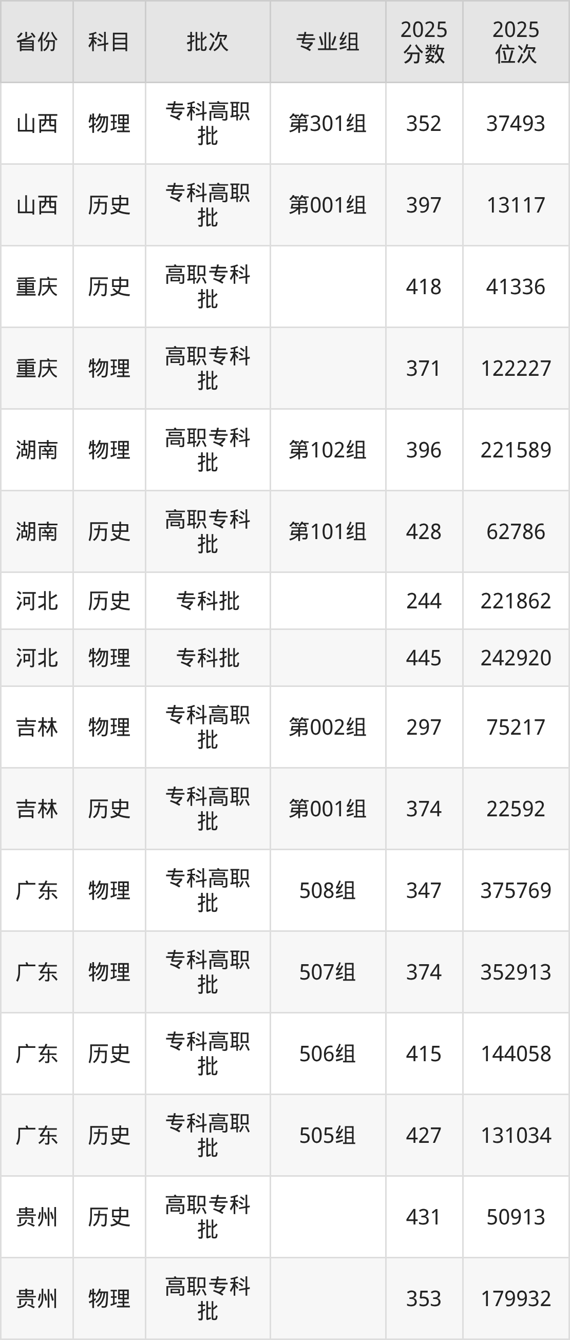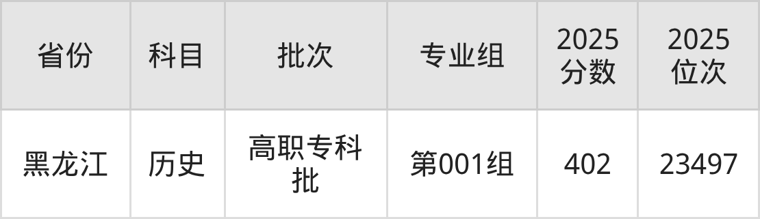 普通类专科历史类最低402分,专科物理类最低375分