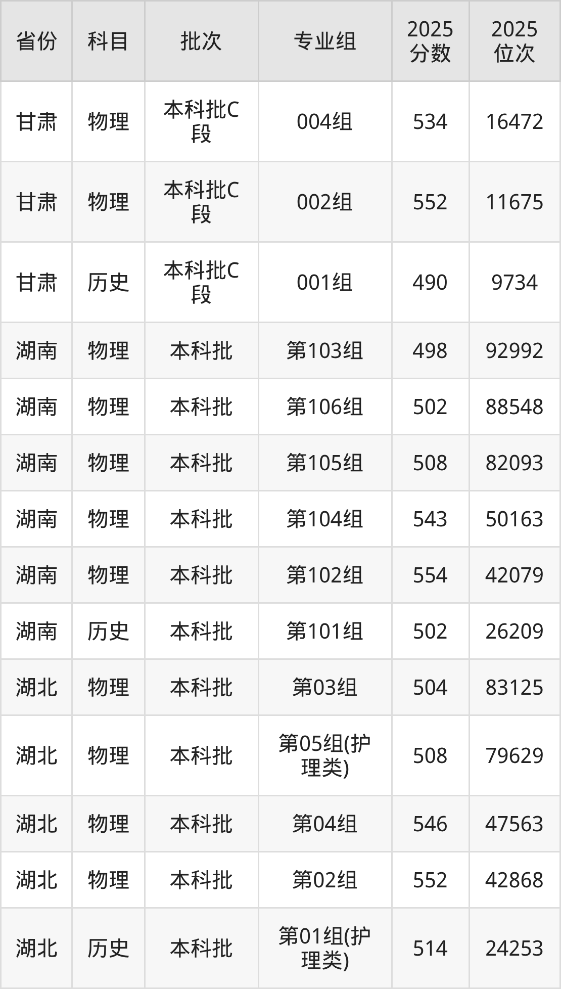 川北医学院专业组103:2025年投档录取最低分为549分,录取最低位次为66644名。