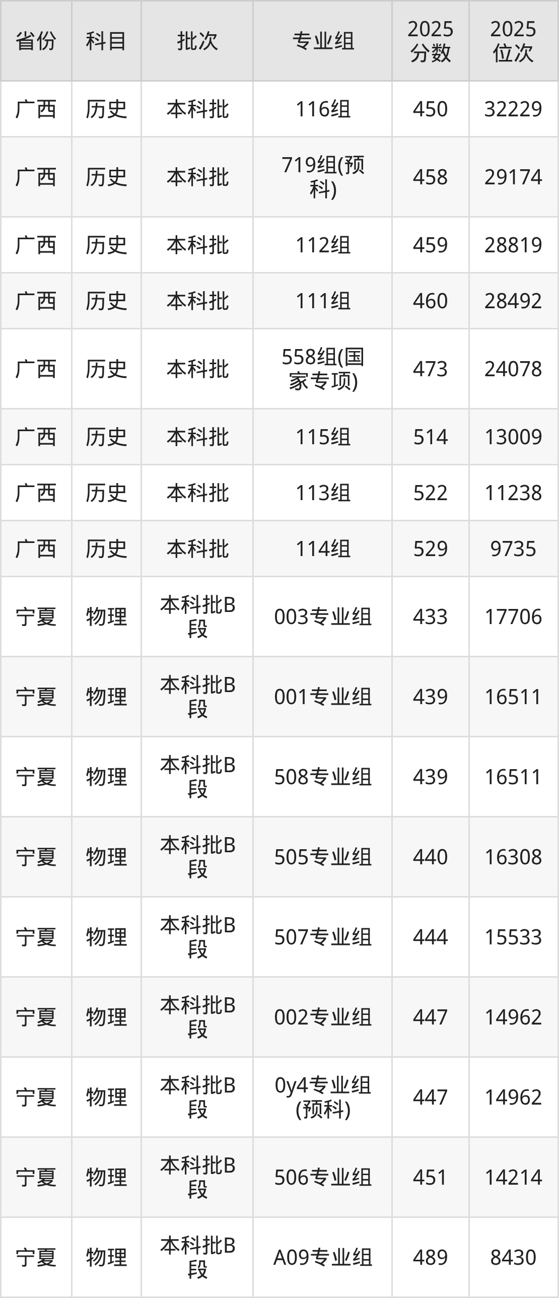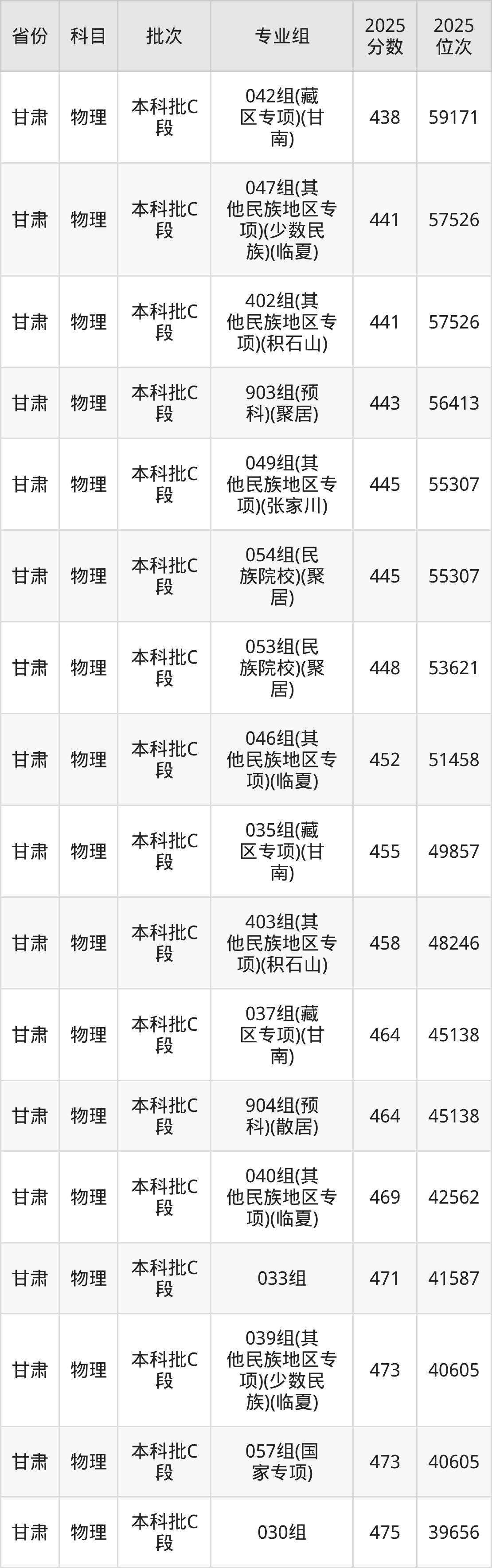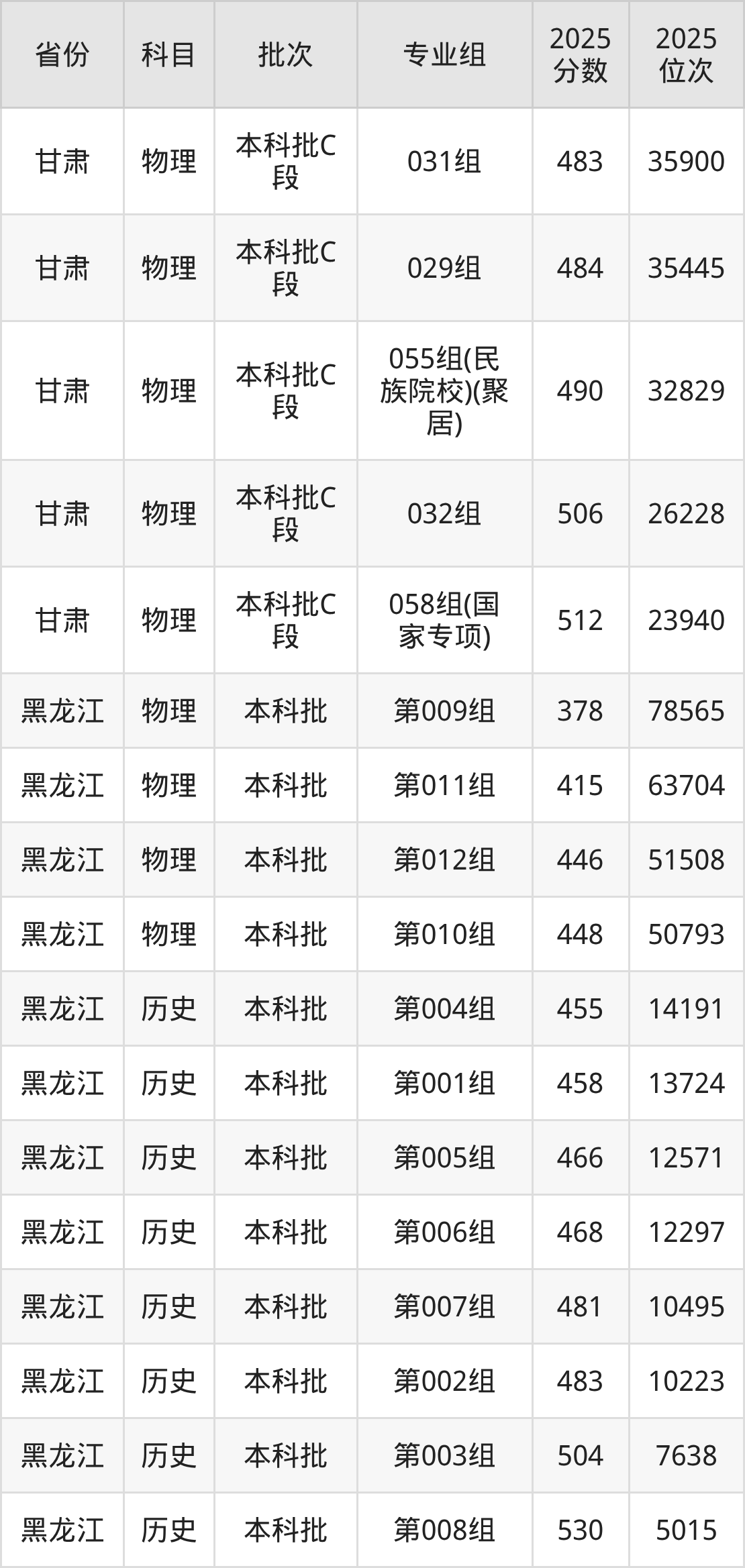西北民族大学第004组:2025年投档录取最低分为455分,录取最低位次为14191名。