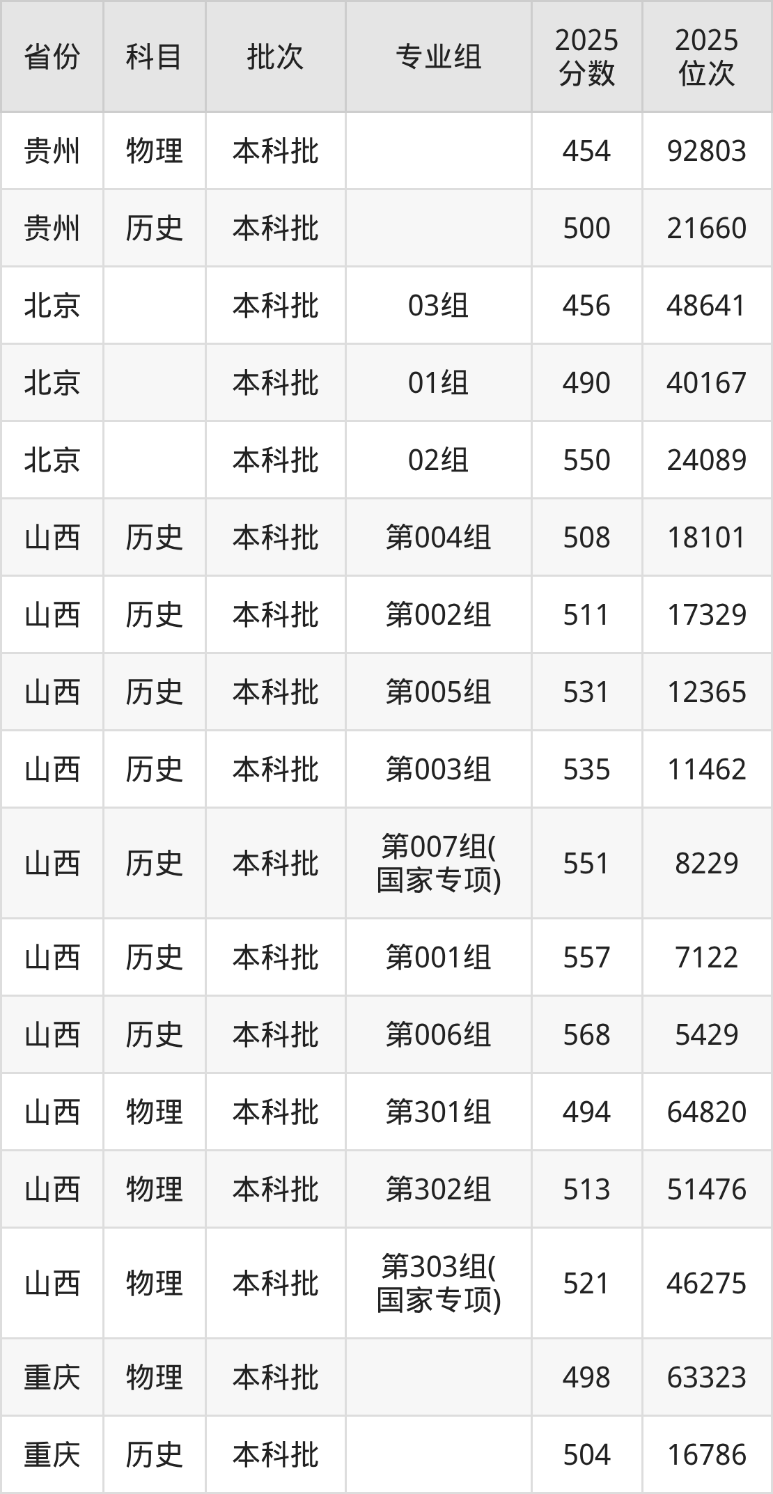 2025年投档录取最低分为454分,录取最低位次为92803名。