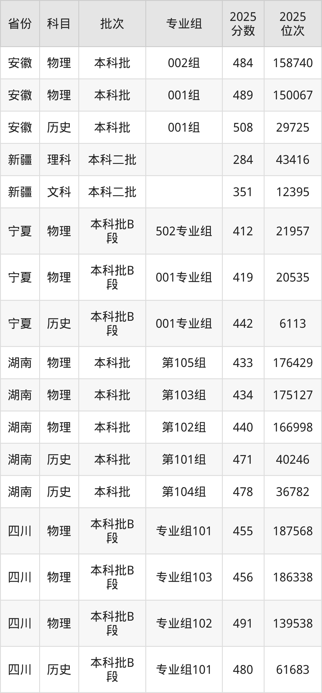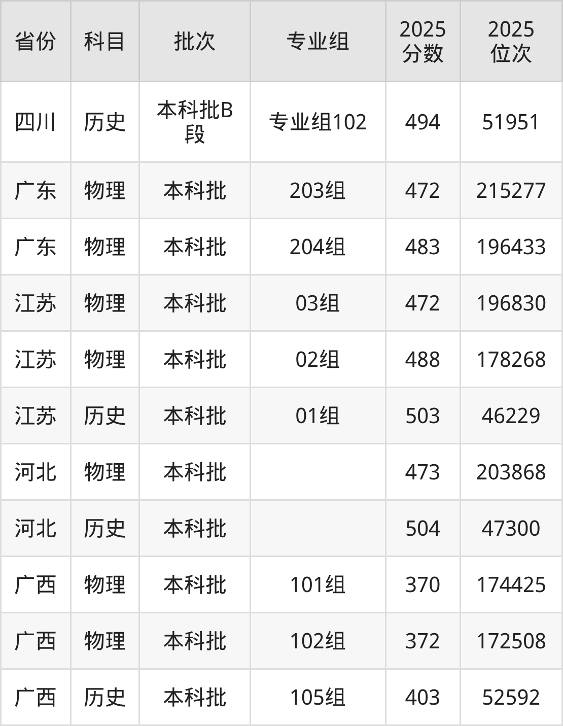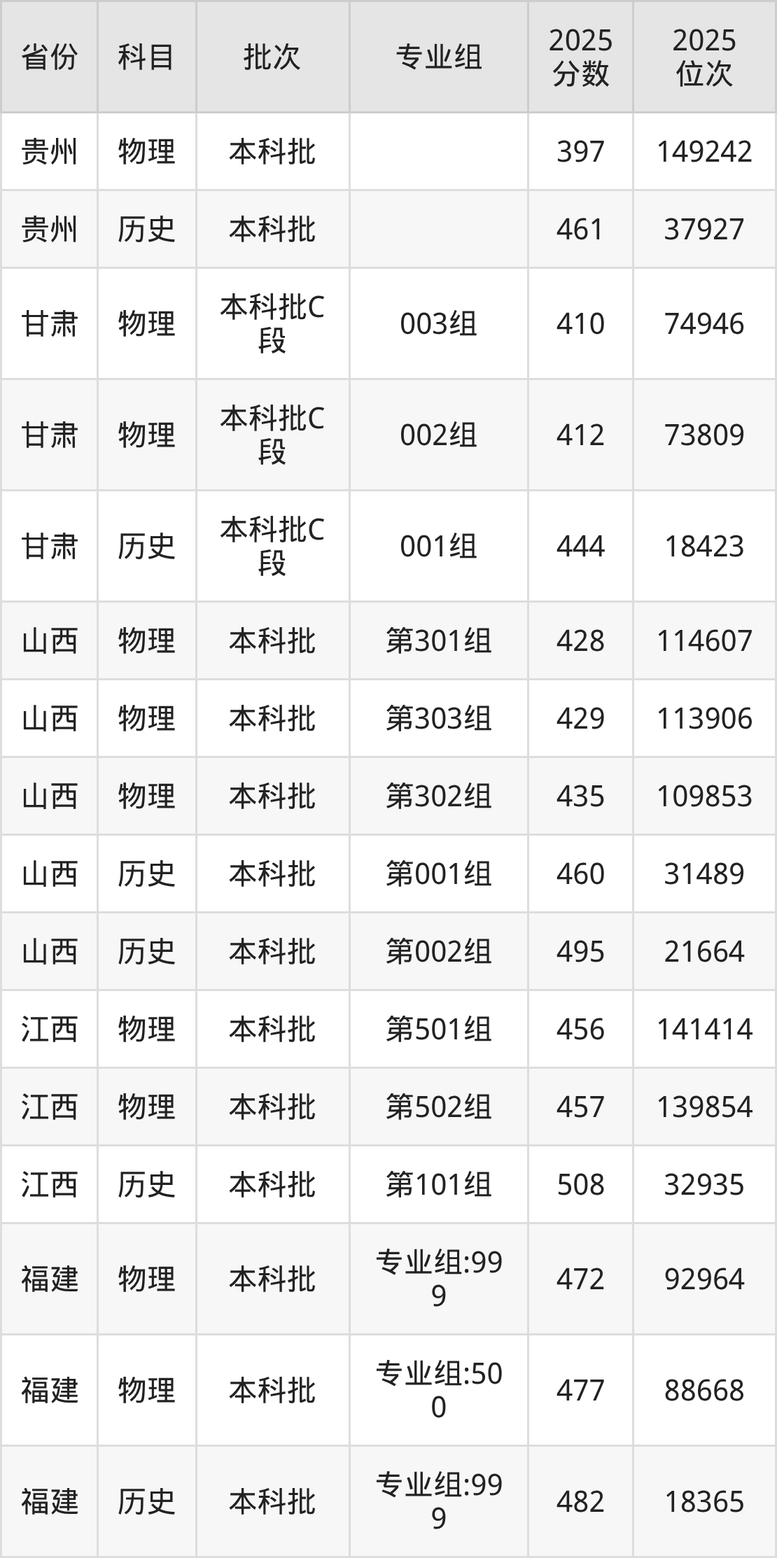 2025年在本科物理类进行招生,各专业组分数线详情如下: