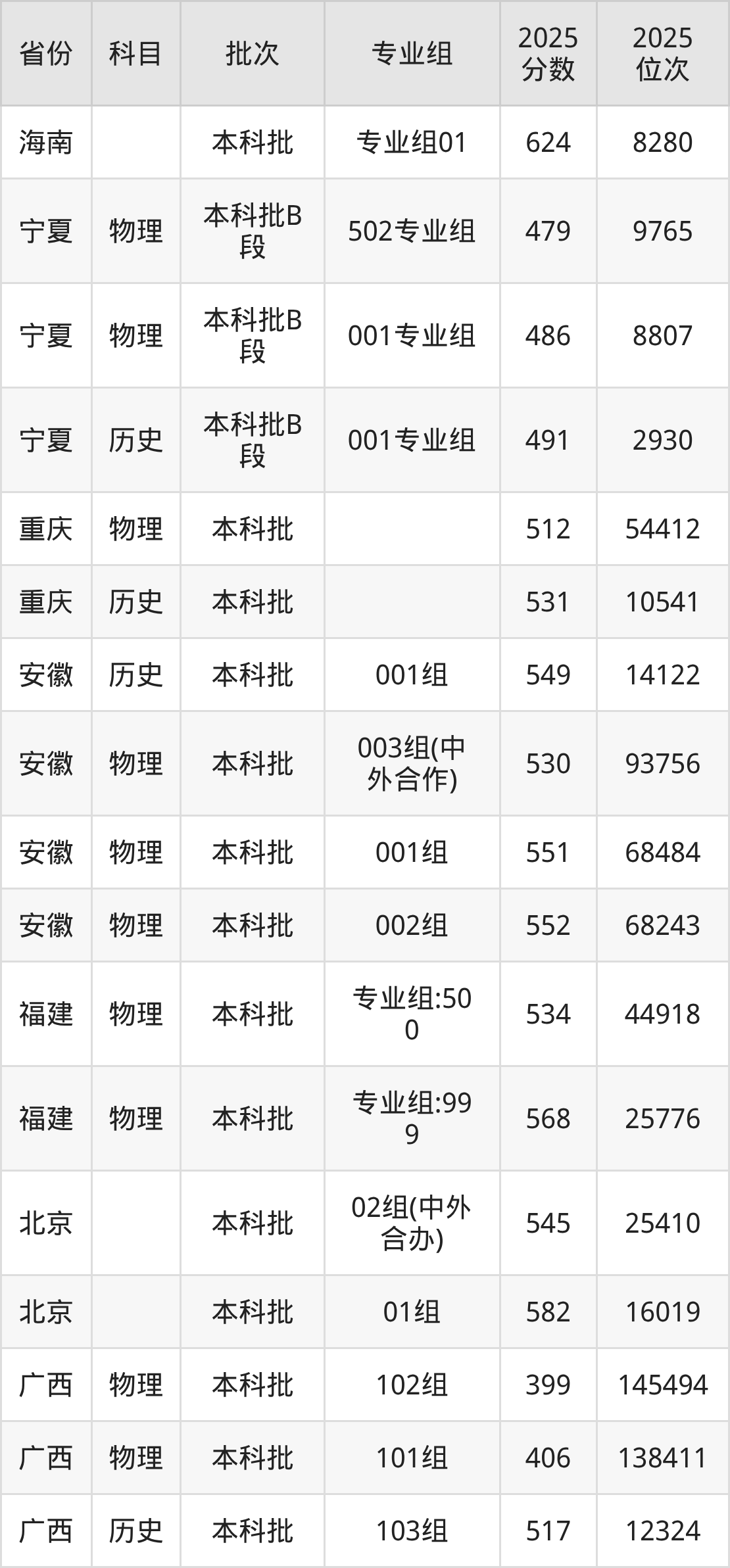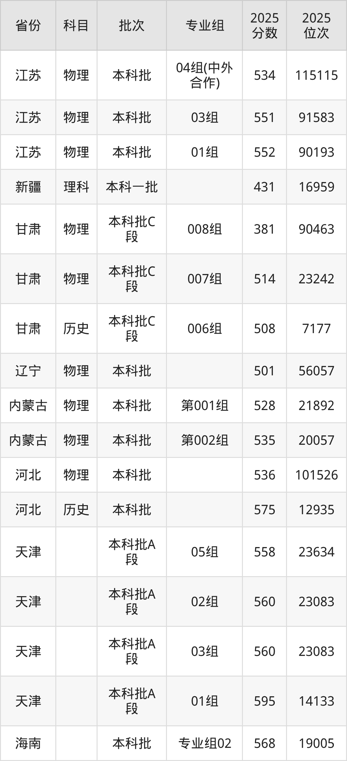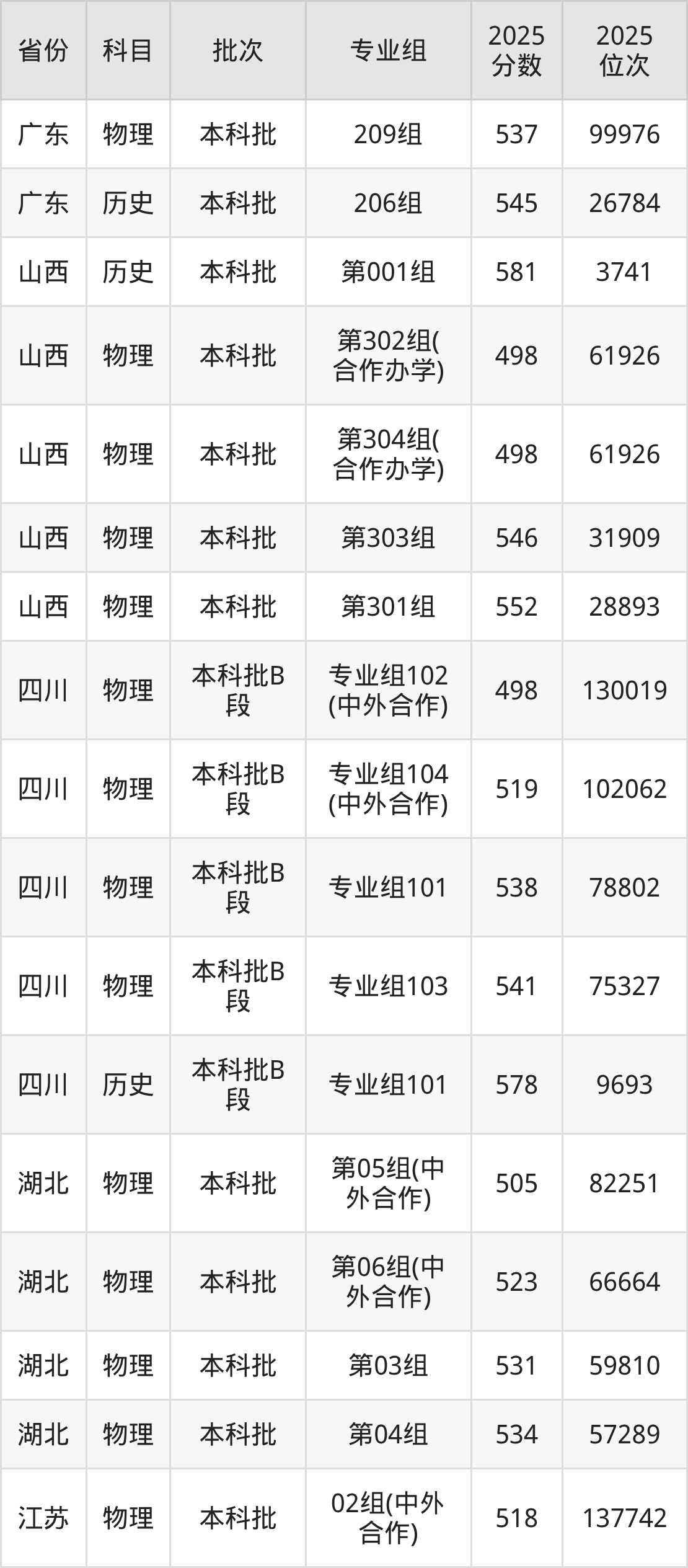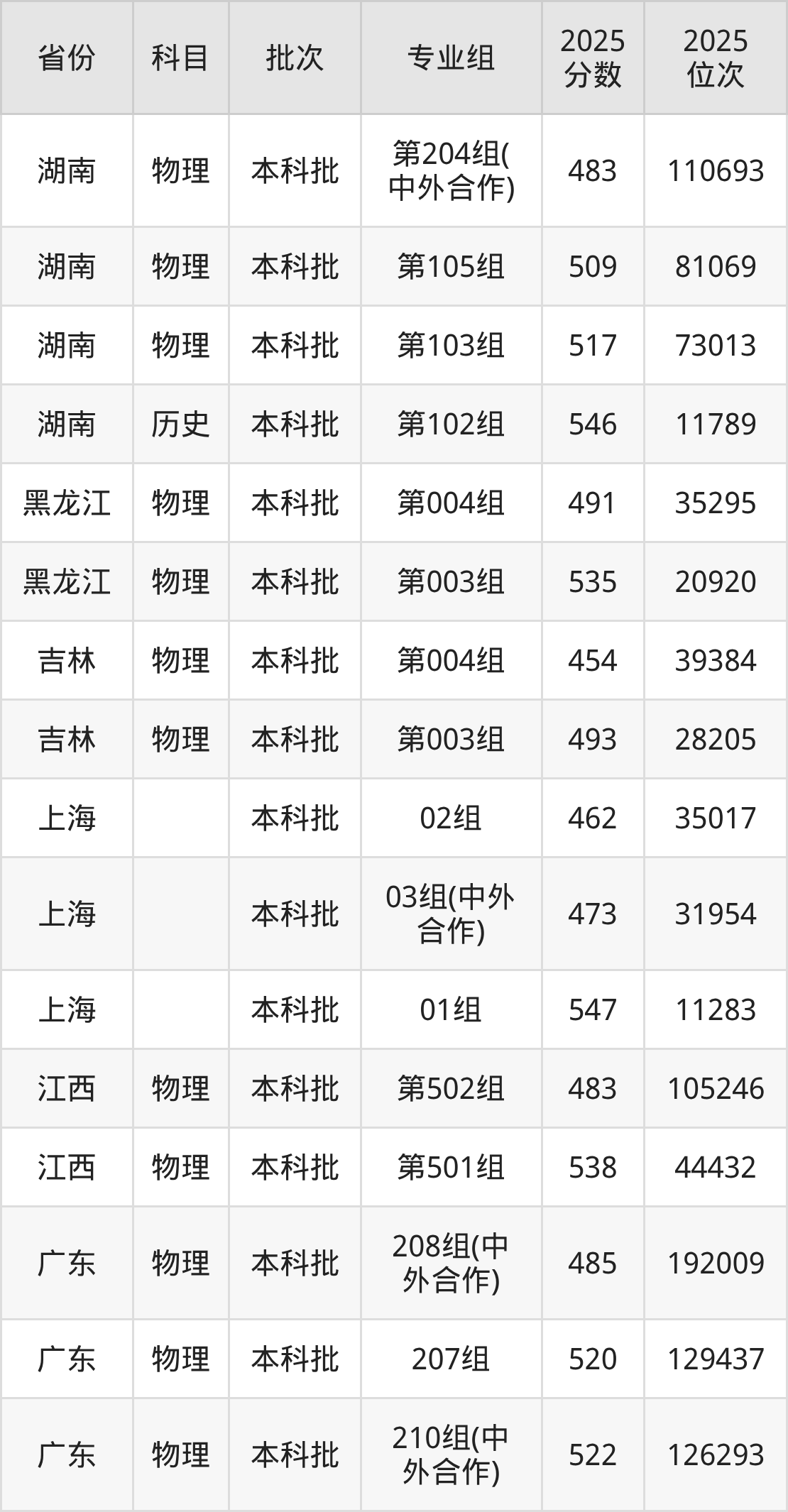2025年在本科物理类进行招生,各专业组分数线详情如下:
