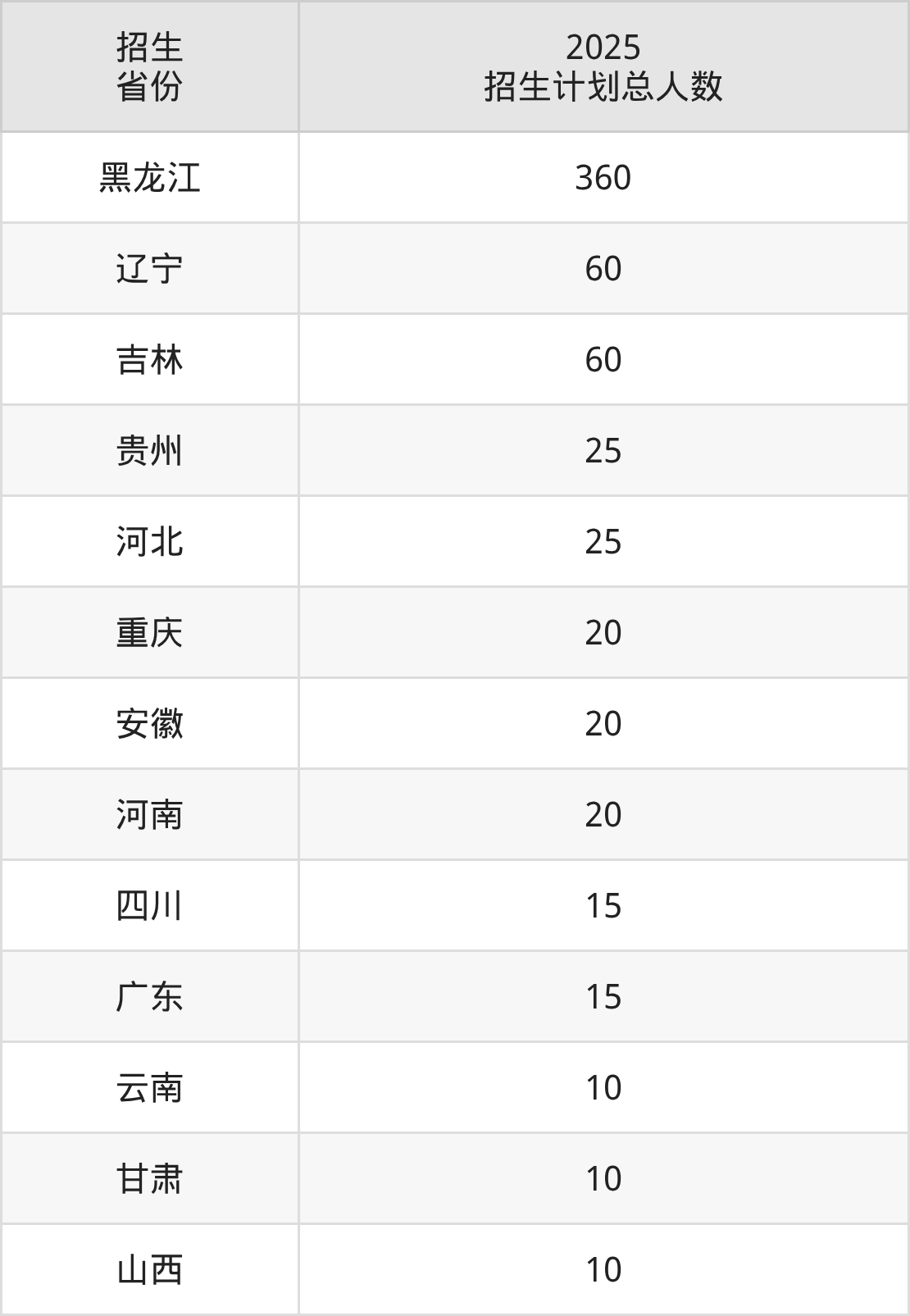 2025年黑龙江司法警官职业学院面向全国13个省市开展专科招生;招生专业共4个,招生人数共650人。2025年在黑龙江省招生计划总人数是360人,其中,黑龙江司法警官职业学院在黑龙江省招生人数最多的是司法警务。黑龙江司法警官职业学院在各省具体招生人数情况如下表。