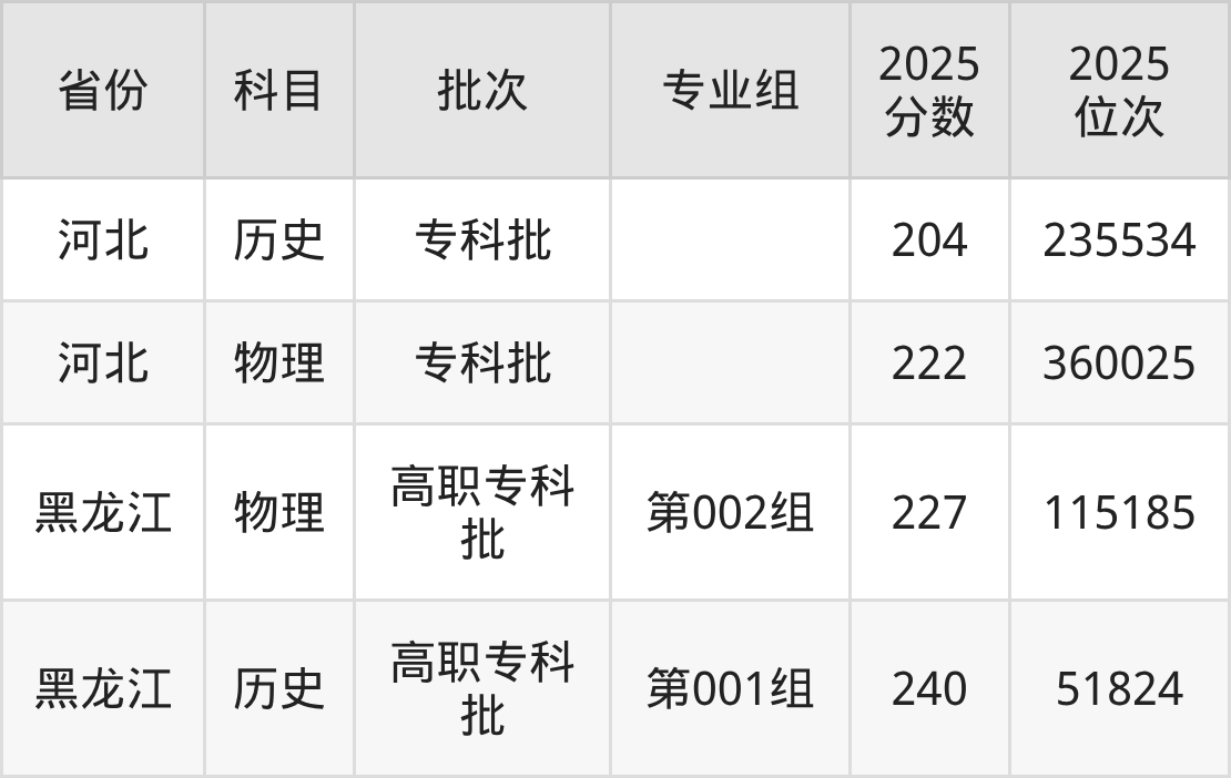专科历史类投档录取最低204分,专科物理类投档录取最低222分