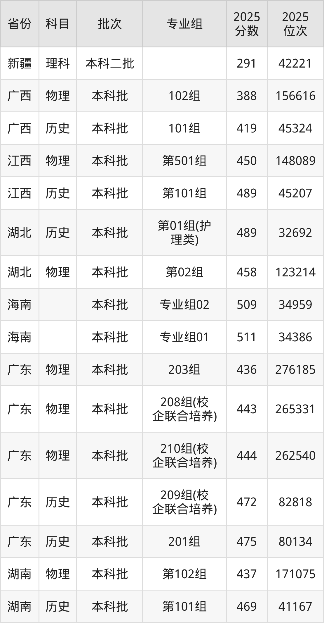 下面是2025年广州科技职业技术大学全国录取分数线一览表,请查阅。