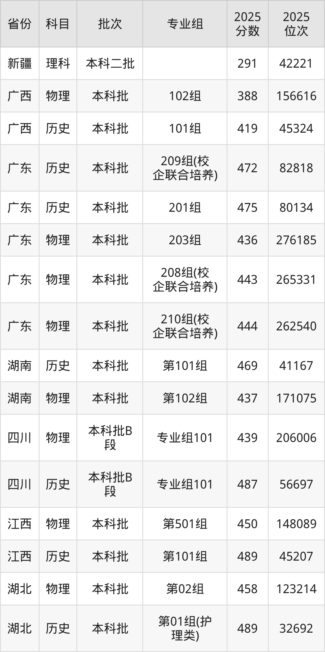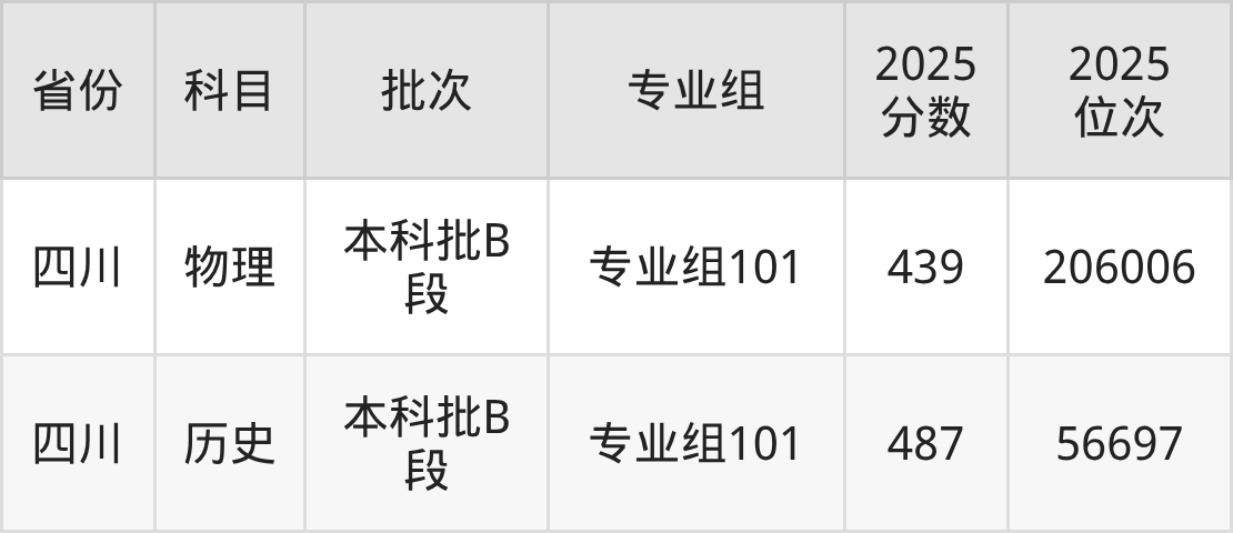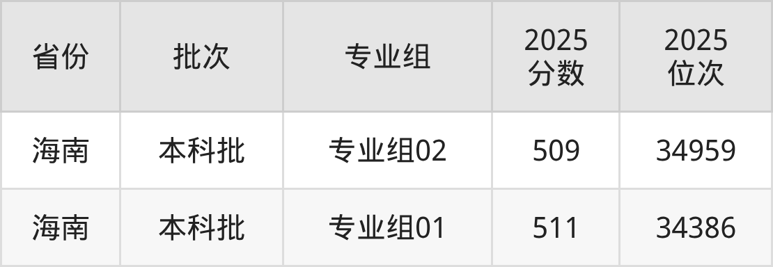 2025年在本科理科进行招生,各专业组分数线详情如下: