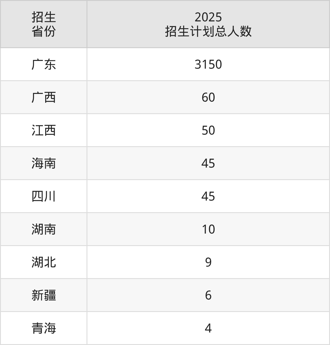 2025年广州科技职业技术大学面向全国9个省市开展本科招生;招生专业共25个,招生人数共3379人。2025年在广东省招生计划总人数是3150人,其中,广州科技职业技术大学在广东省招生人数最多的是计算机应用工程。广州科技职业技术大学在各省具体招生人数情况如下表。