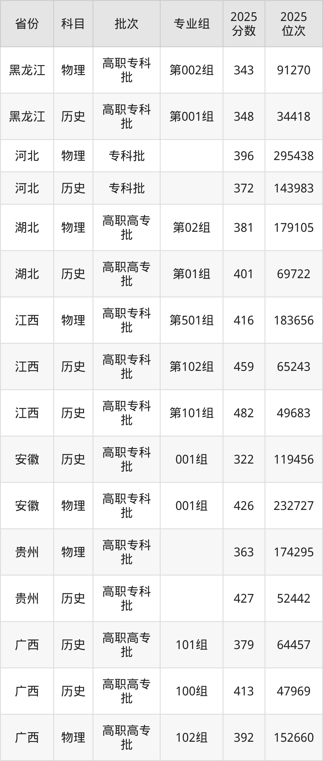 惠州卫生职业技术学院第002组:2025年投档录取最低分为343分,录取最低位次为91270名。