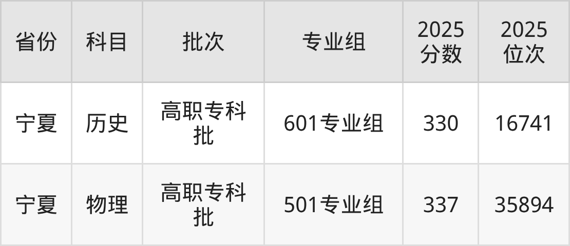惠州卫生职业技术学院501专业组:2025年投档录取最低分为337分,录取最低位次为35894名。