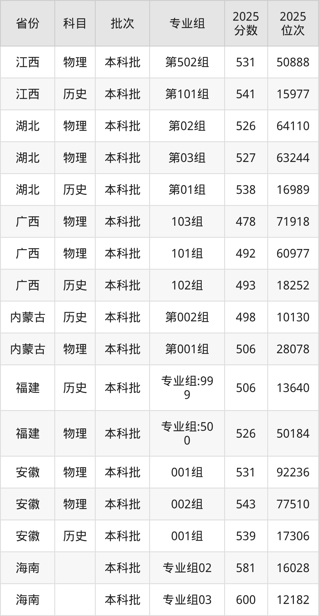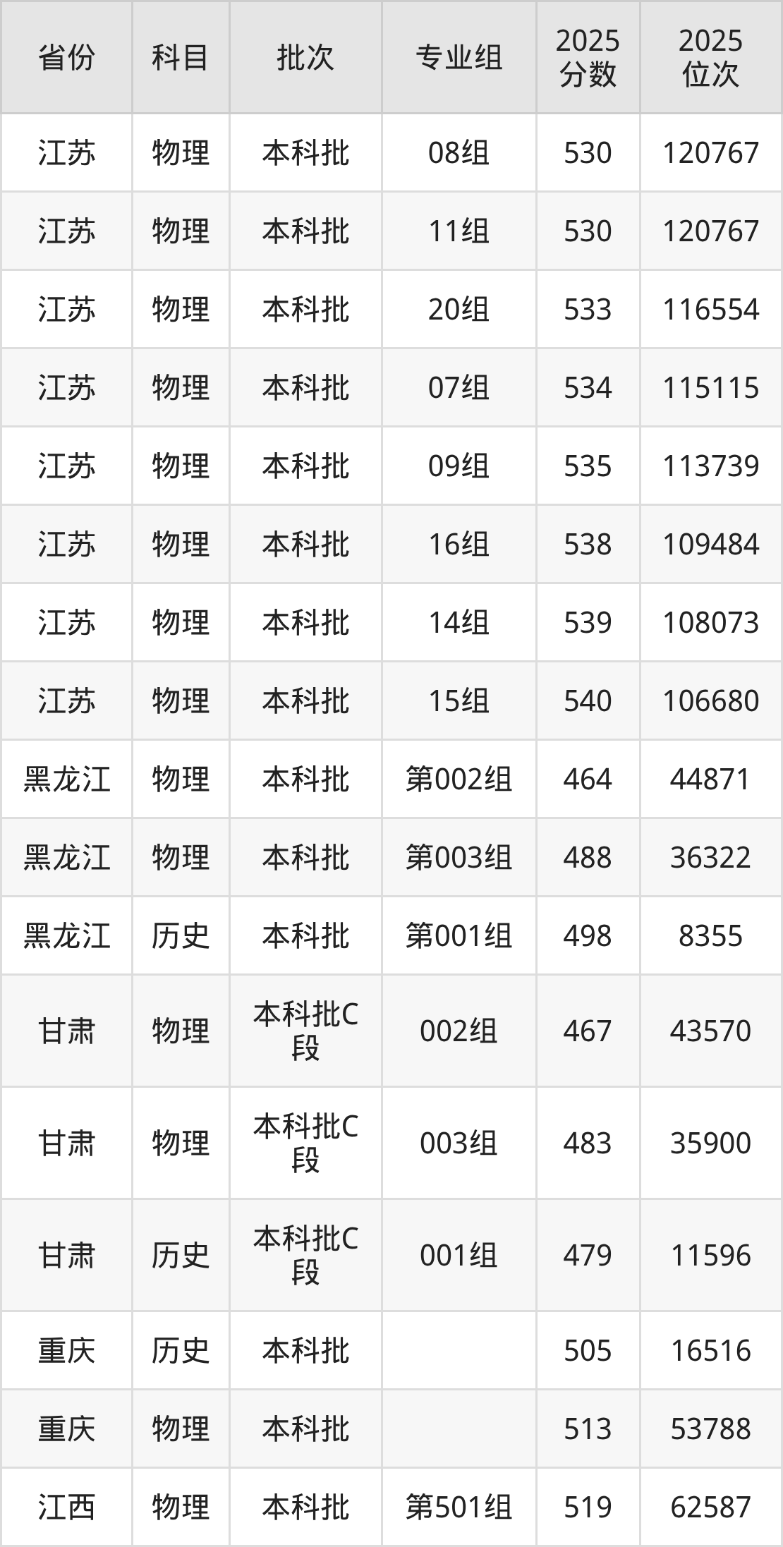 江苏理工学院05组:2025年投档录取最低分为539分,录取最低位次为28888名。