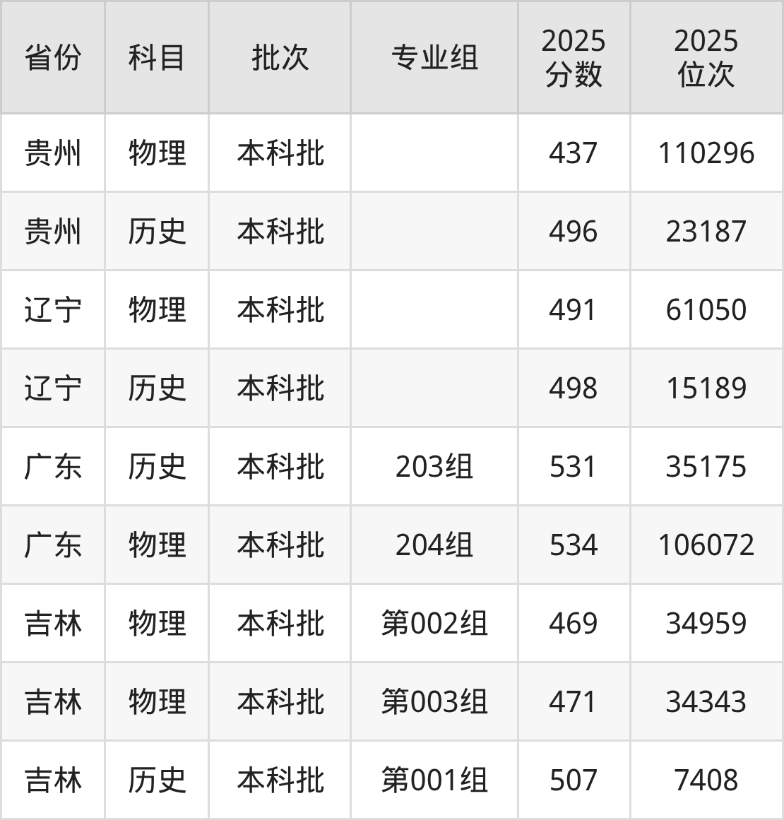 2025年投档录取最低分为491分,录取最低位次为61050名。
