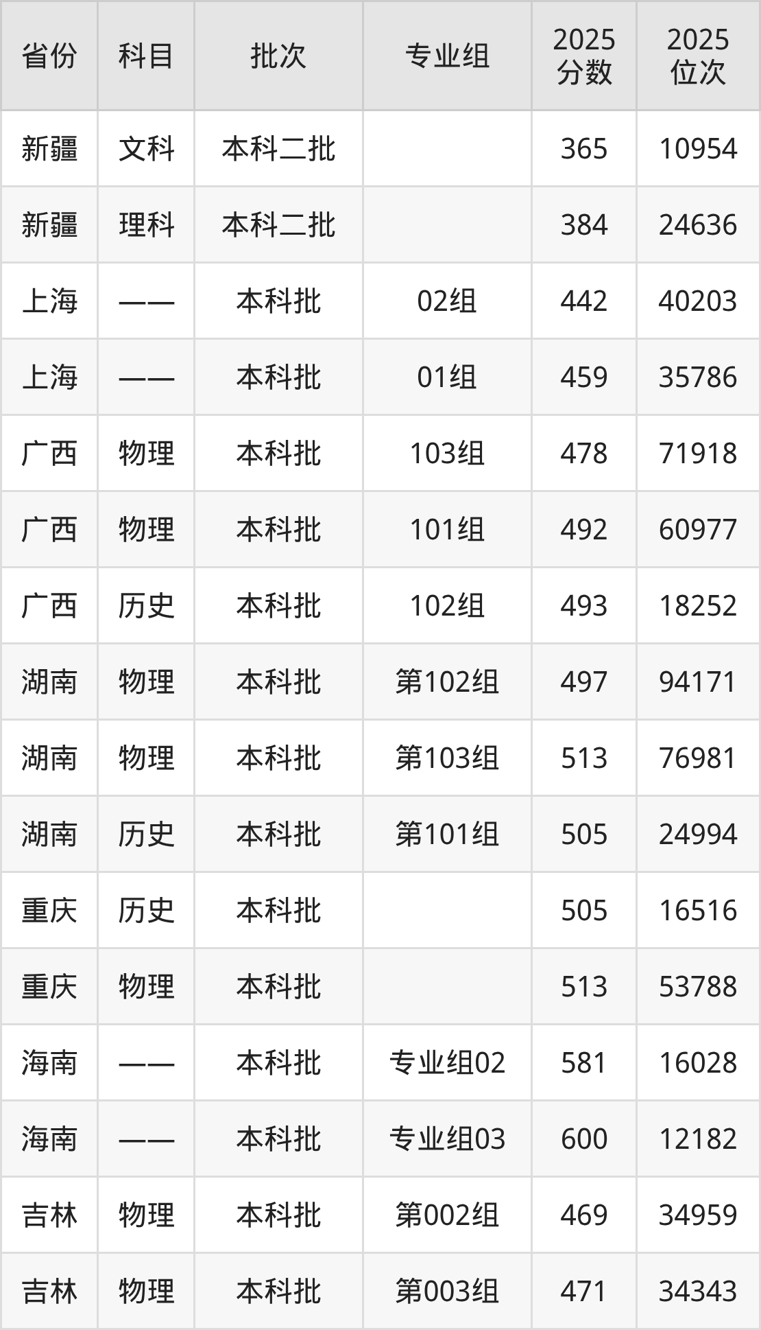 2025年江苏理工学院全国录取分数线是365分到600分,录取最低在新疆文科、录取最高在海南(专业组03)。各省各专业组最低分具有差异,详情如下: