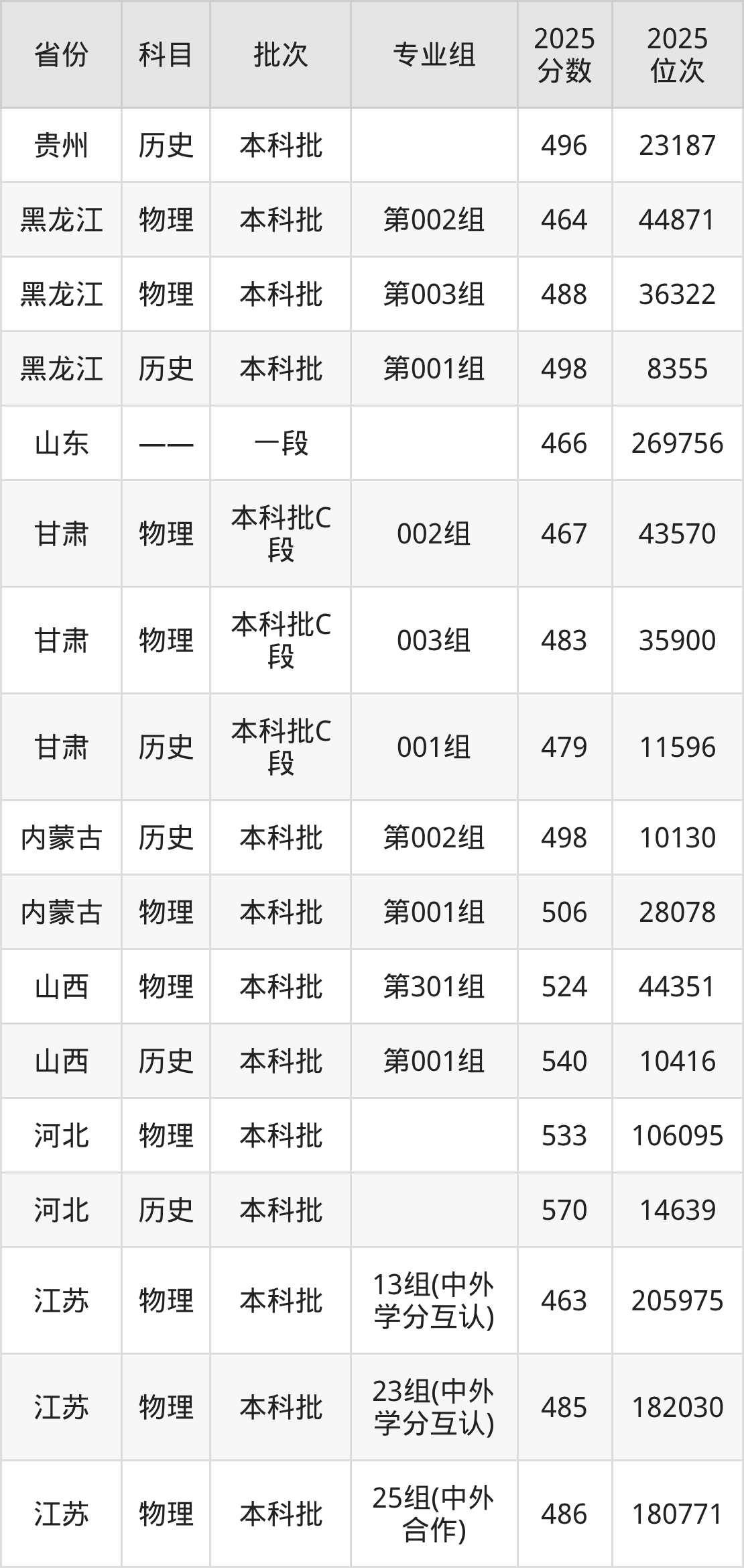 下面是2025年江苏理工学院全国录取分数线一览表,请查阅。