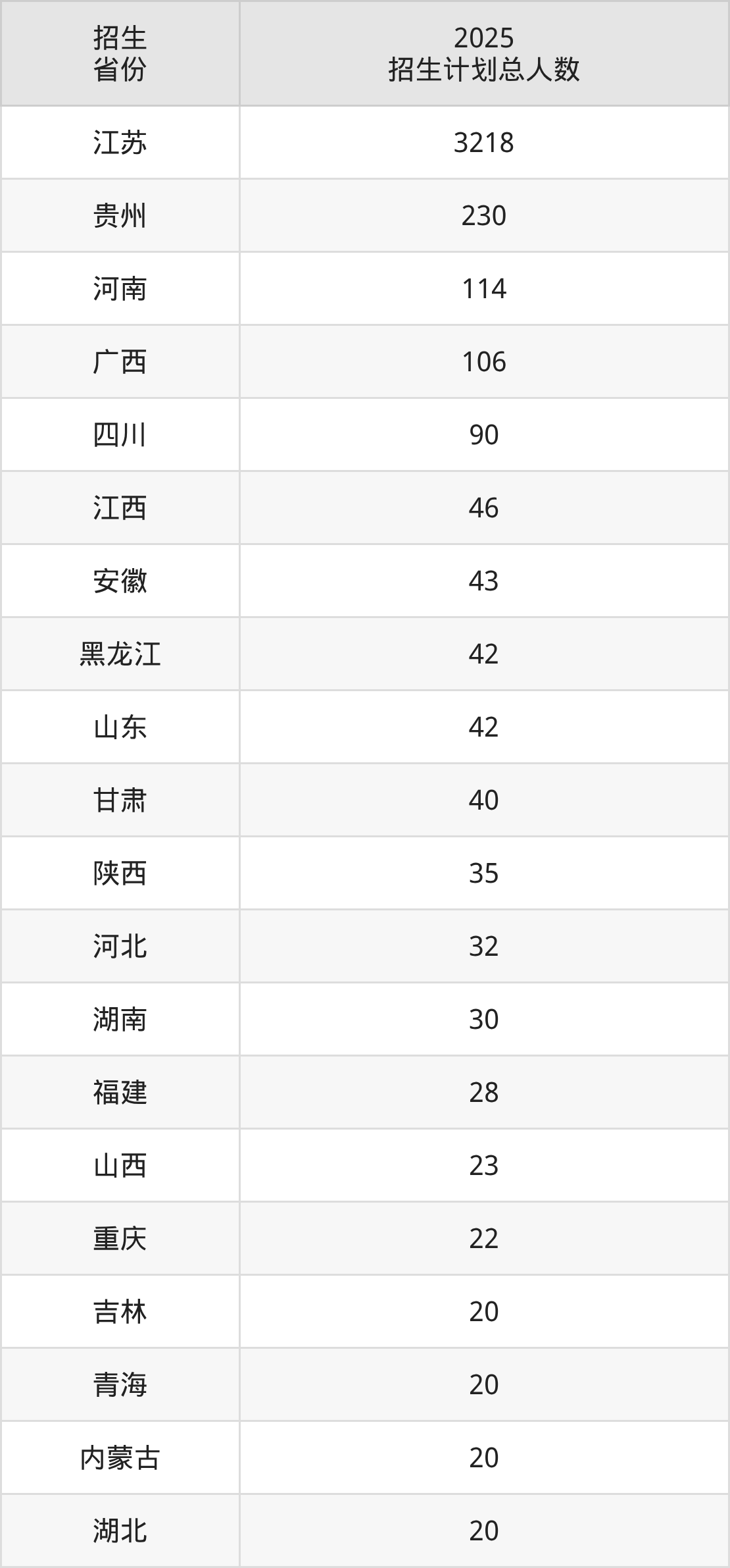 2025年江苏理工学院面向全国26个省市开展本科招生;招生专业共52个,招生人数共4296人。2025年在江苏省招生计划总人数是3218人,其中,江苏理工学院在江苏省招生人数最多的是电气工程及其自动化。江苏理工学院在各省具体招生人数情况如下表。
