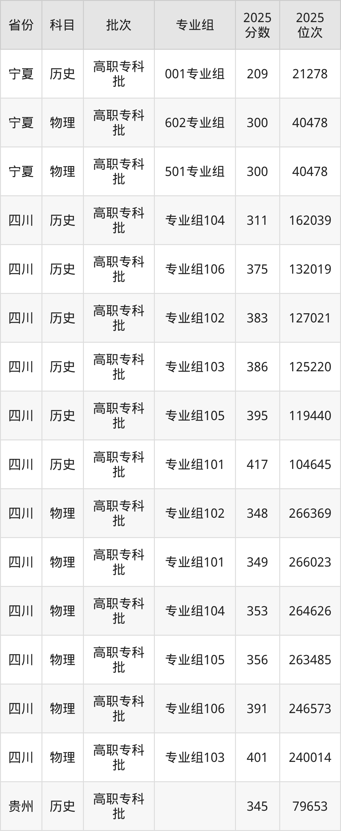 西双版纳职业技术学院专业组102:2025年投档录取最低分为383分,录取最低位次为127021名。