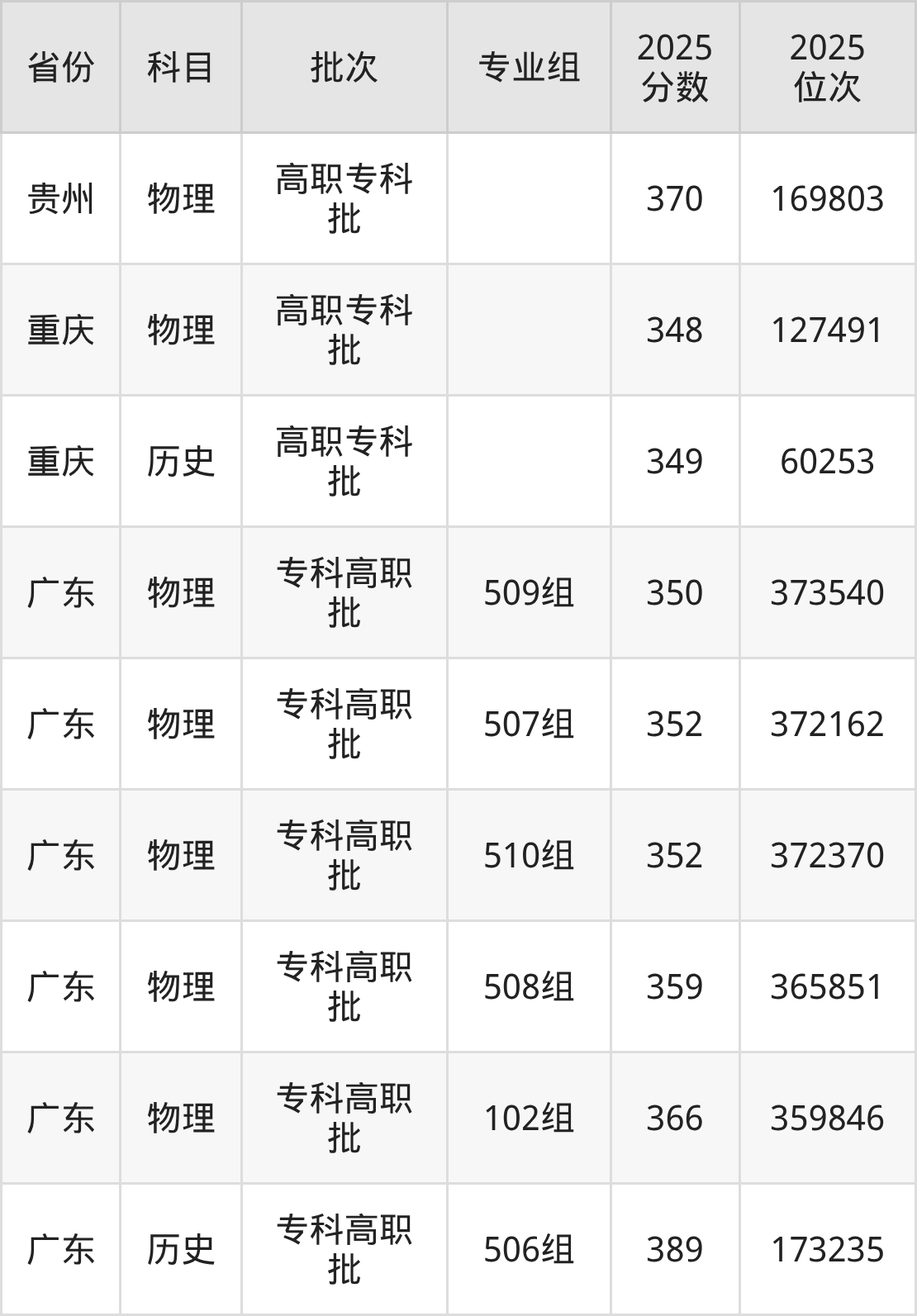 西双版纳职业技术学院专业组101:2025年投档录取最低分为349分,录取最低位次为266023名。