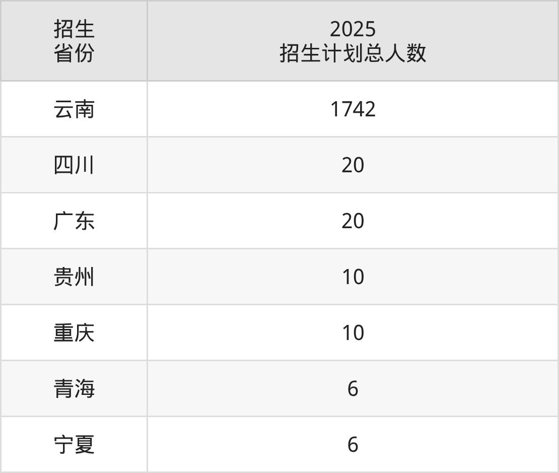 2025年西双版纳职业技术学院面向全国7个省市开展专科招生;招生专业共34个,招生人数共1814人。