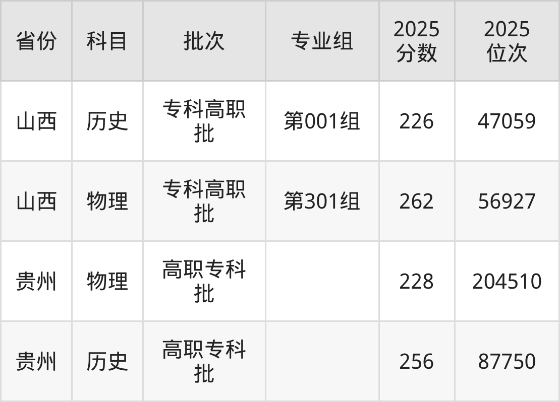 黄冈科技职业学院第001组:2025年投档录取最低分为226分,录取最低位次为47059名。