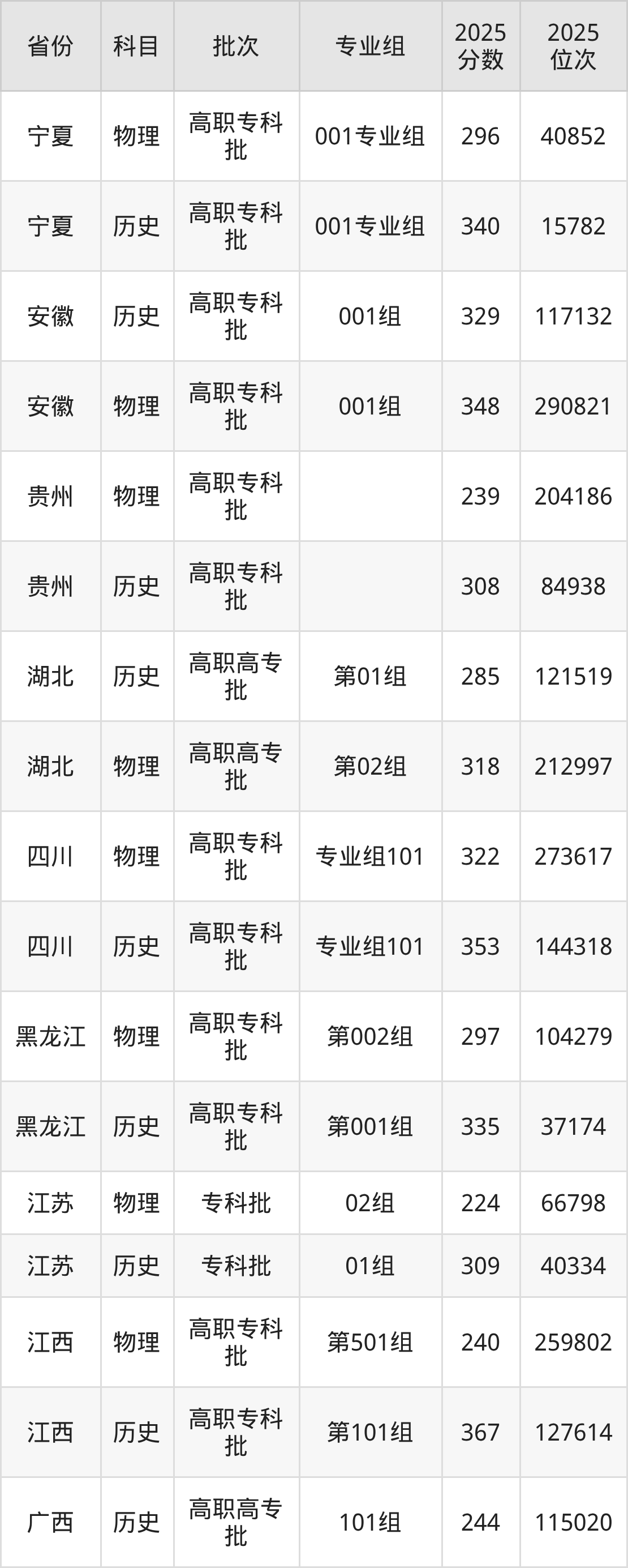 枣庄科技职业学院第001组:2025年投档录取最低分为307分,录取最低位次为27417名。