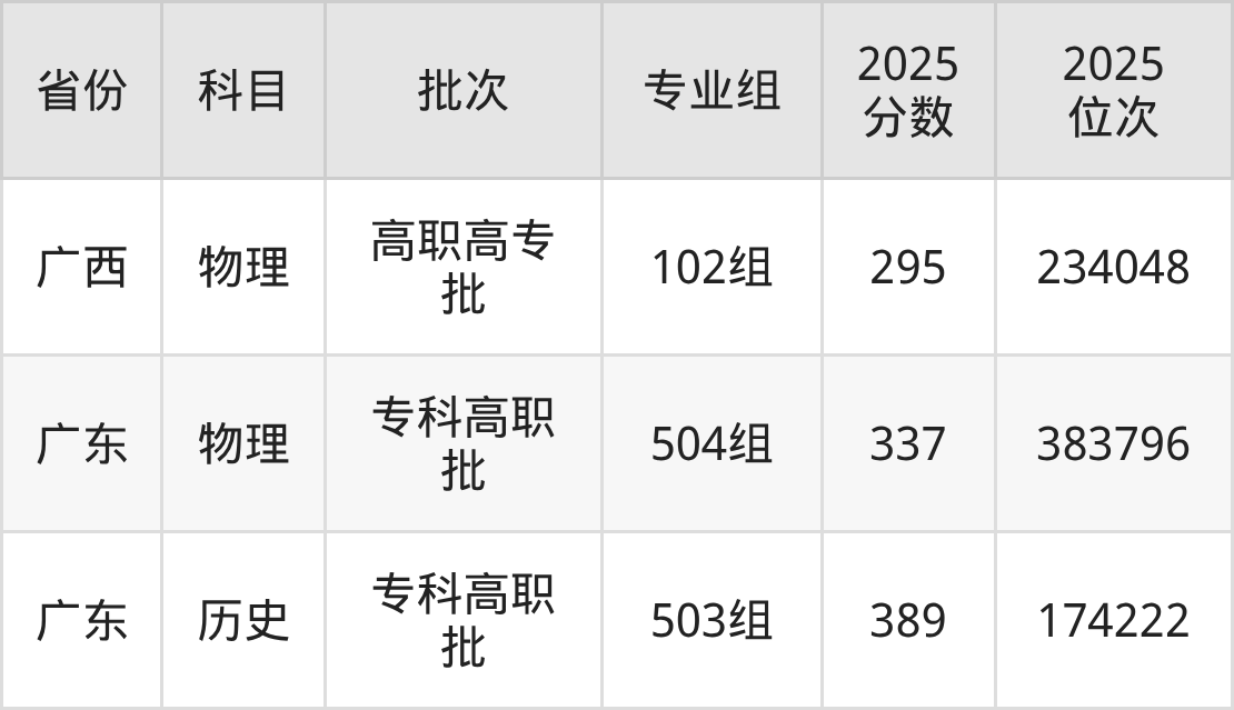 枣庄科技职业学院第003组:2025年投档录取最低分为234分,录取最低位次为78432名。