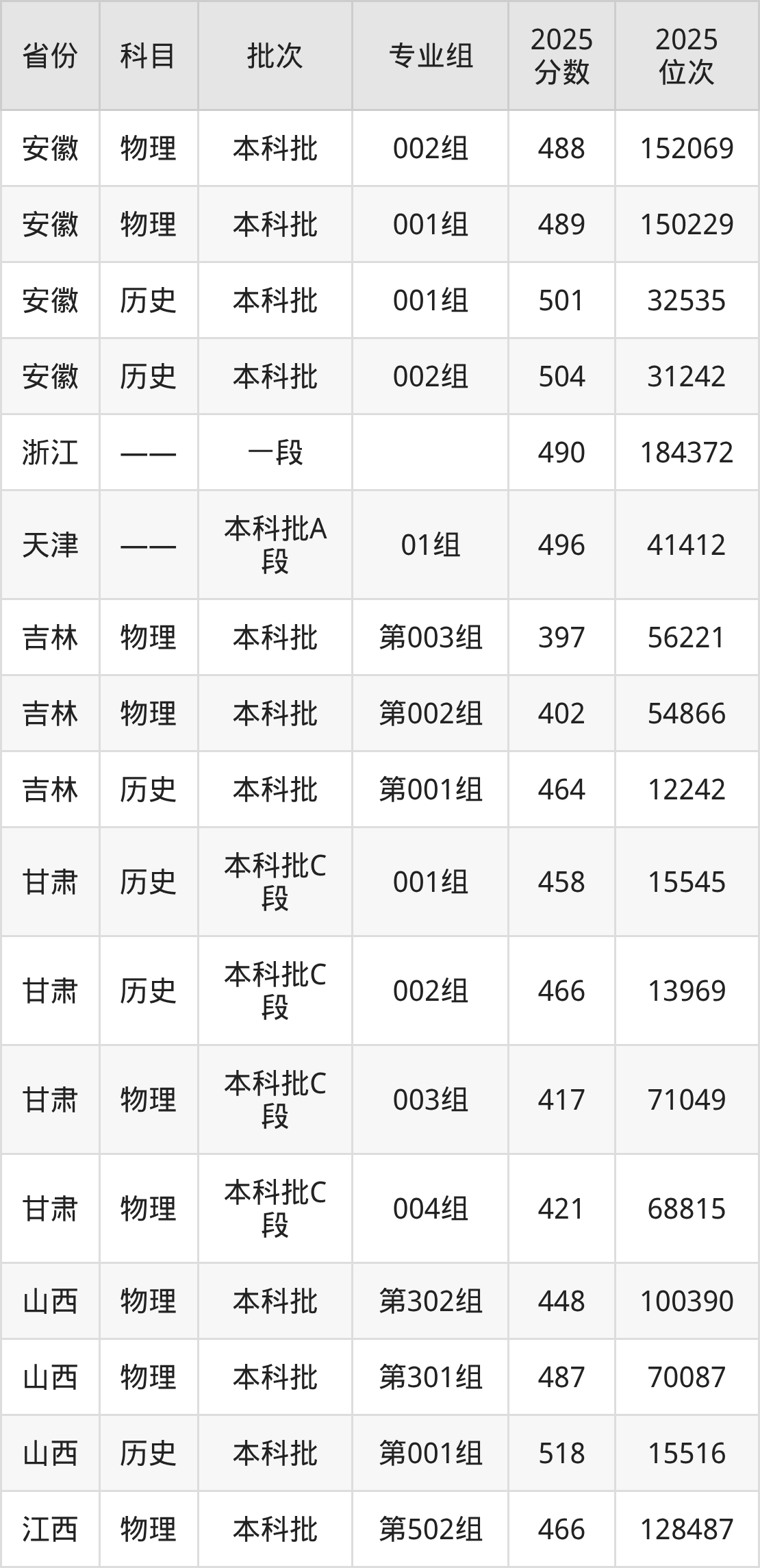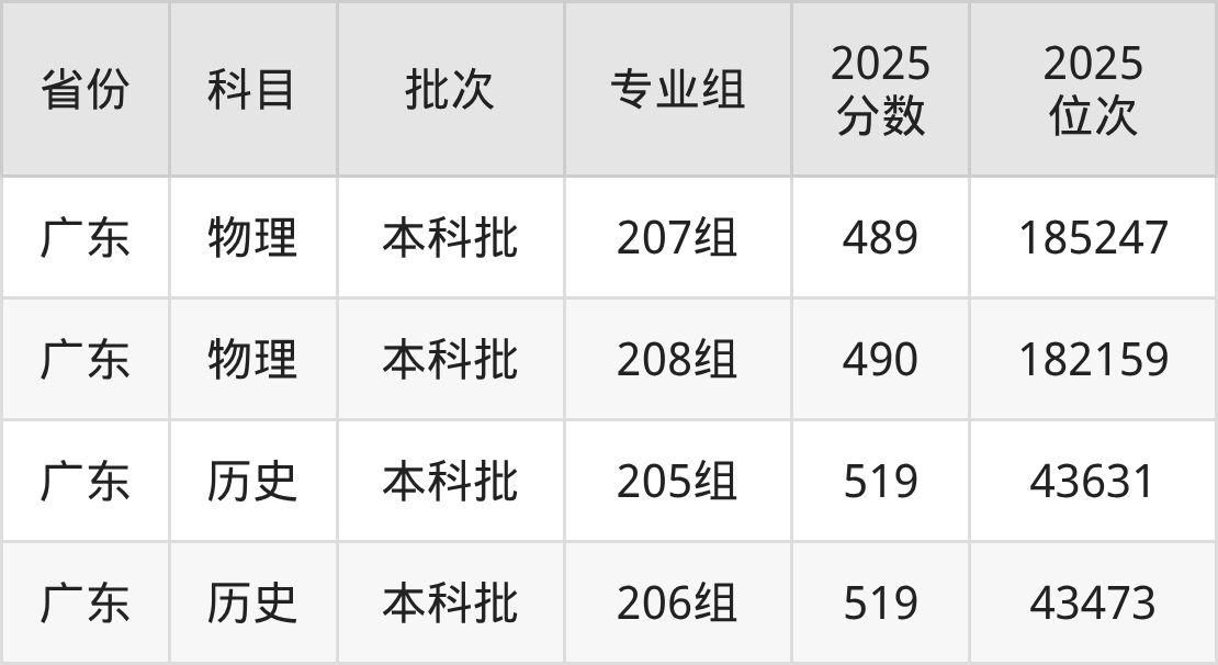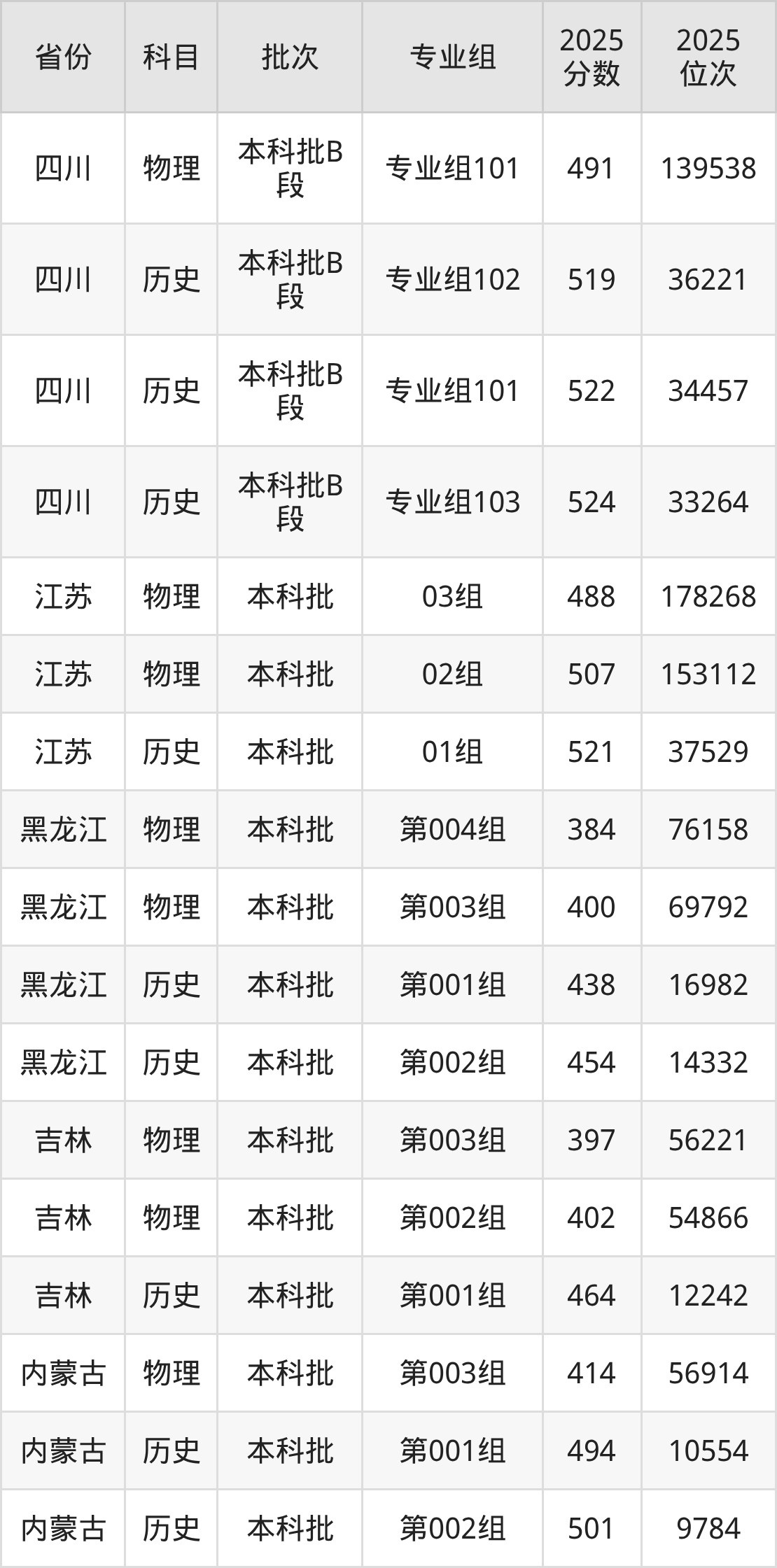 2025年在本科物理类进行招生,各专业组分数线详情如下:
