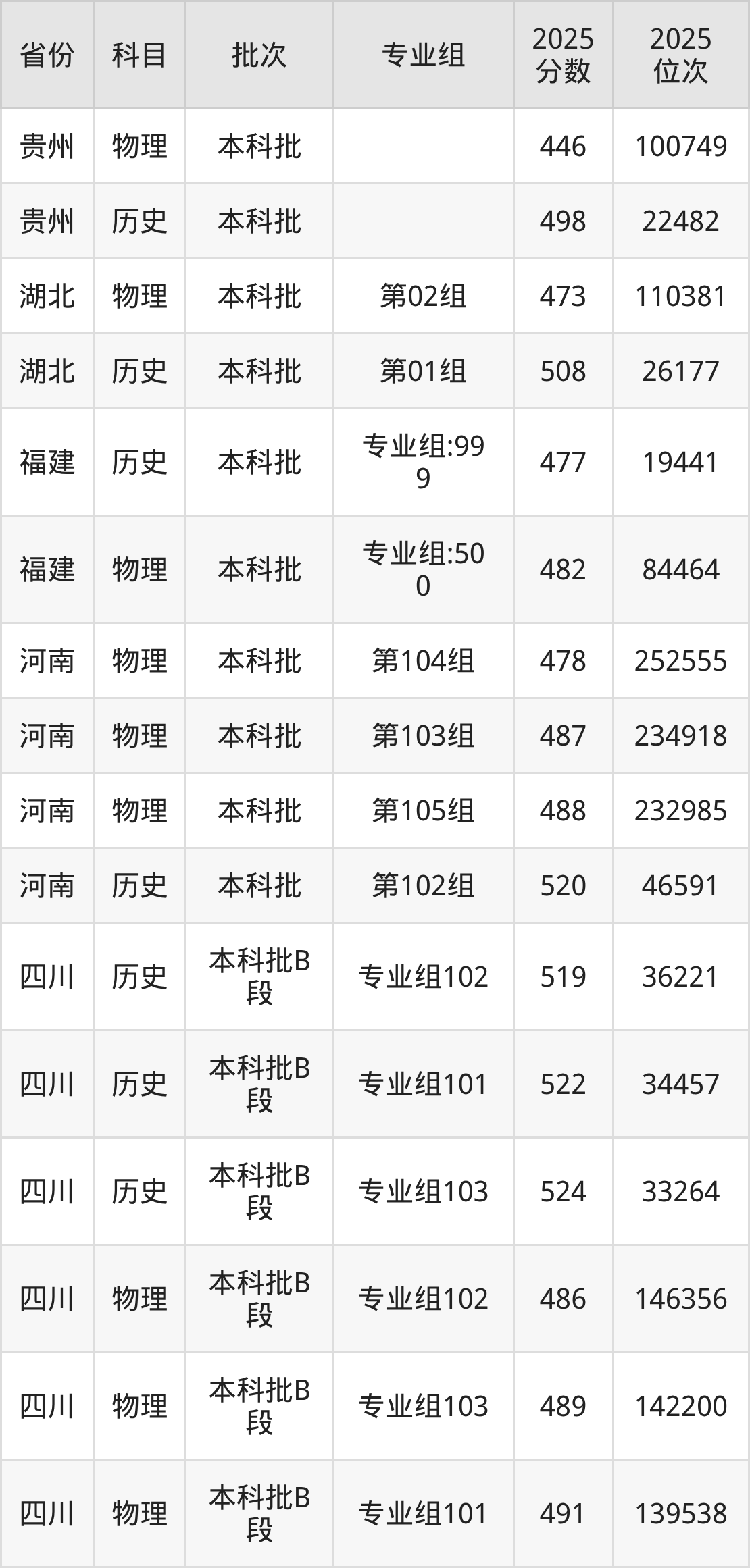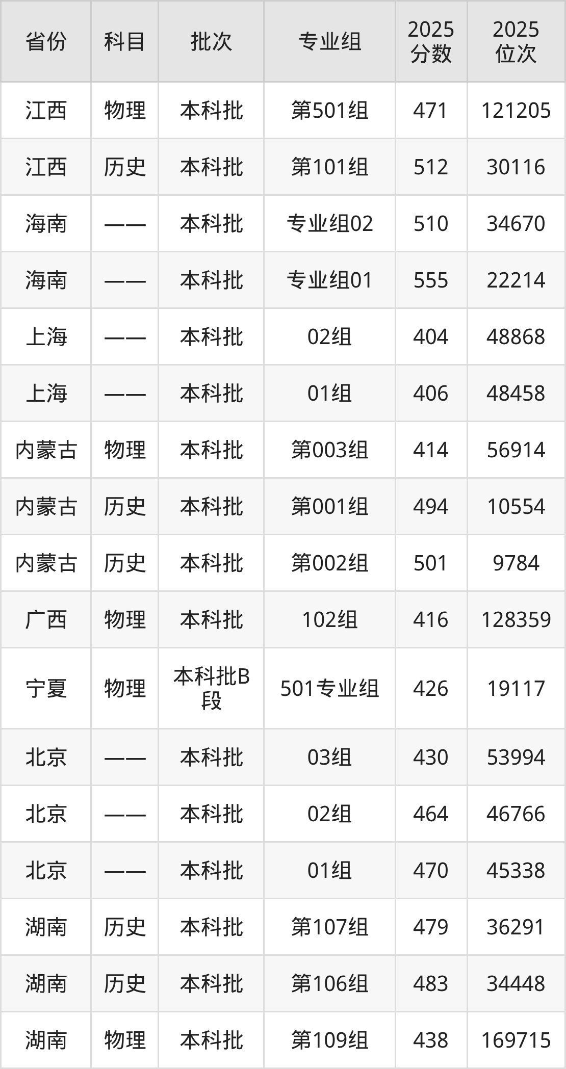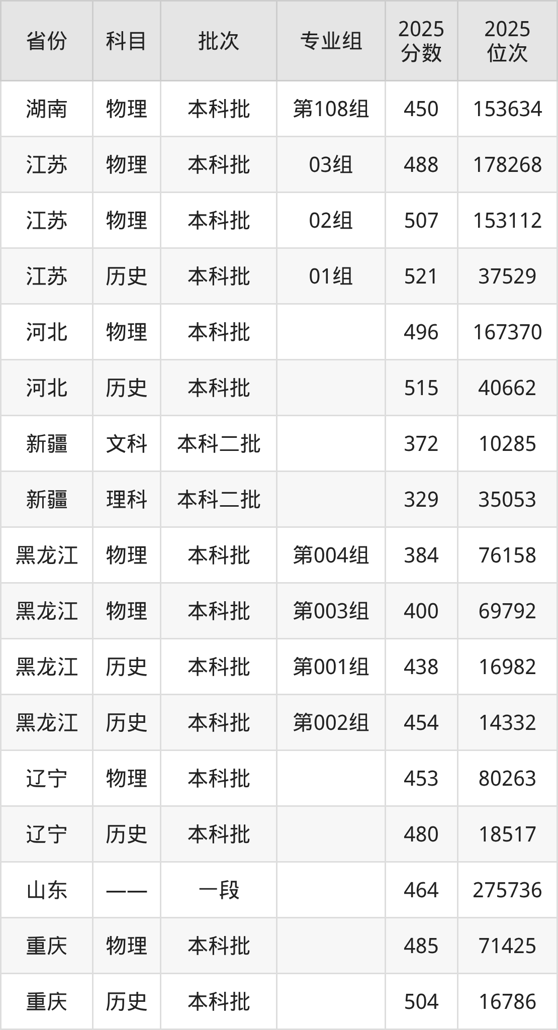 2025年在本科物理类进行招生,各专业组分数线详情如下:
