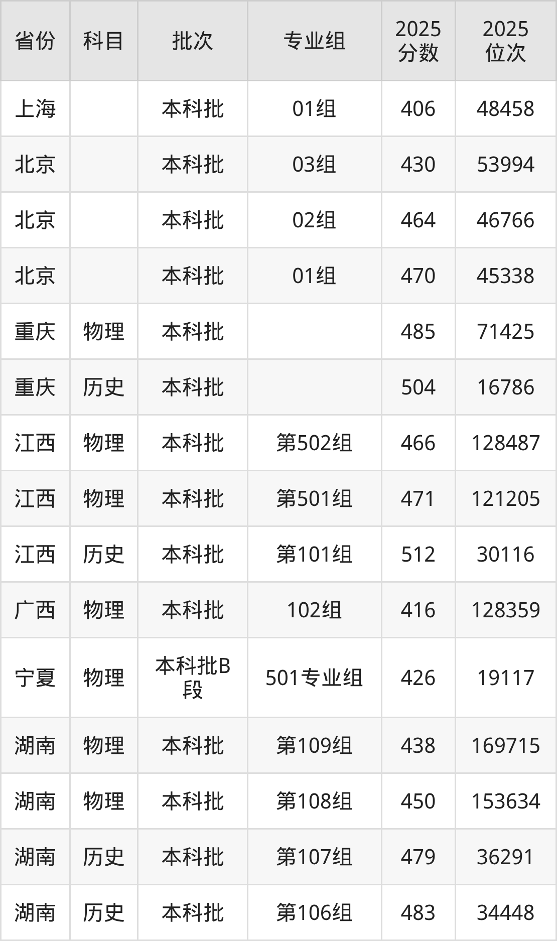 2025年投档录取最低分为453分,录取最低位次为80263名。