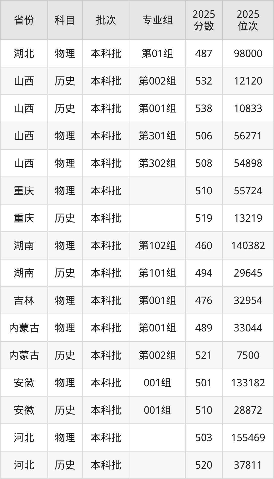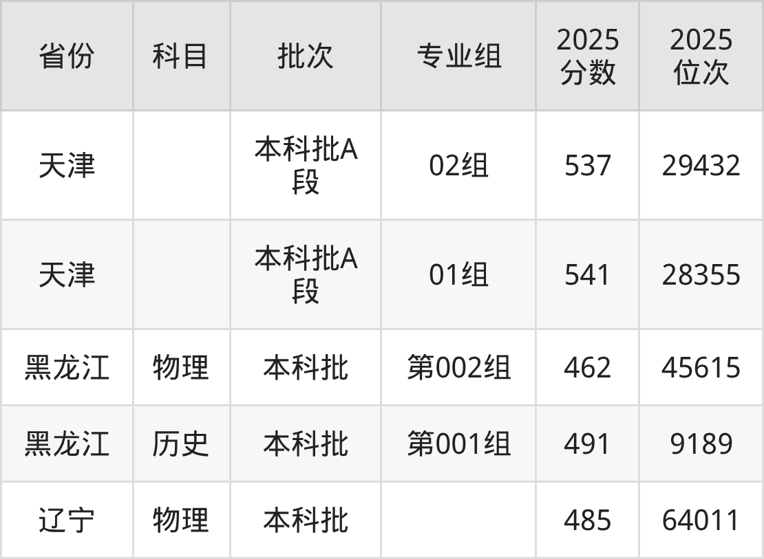 2025年在本科物理类进行招生,各专业组分数线详情如下: