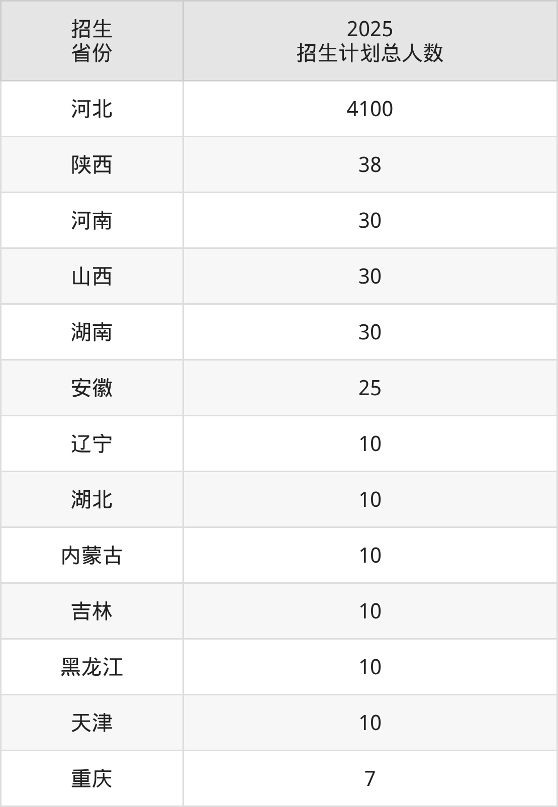 2025年唐山学院面向全国13个省市开展本科招生;招生专业共43个,招生人数共4320人。2025年在河北省招生计划总人数是4100人,其中,唐山学院在河北省招生人数最多的是新能源材料与器件。唐山学院在各省具体招生人数情况如下表。